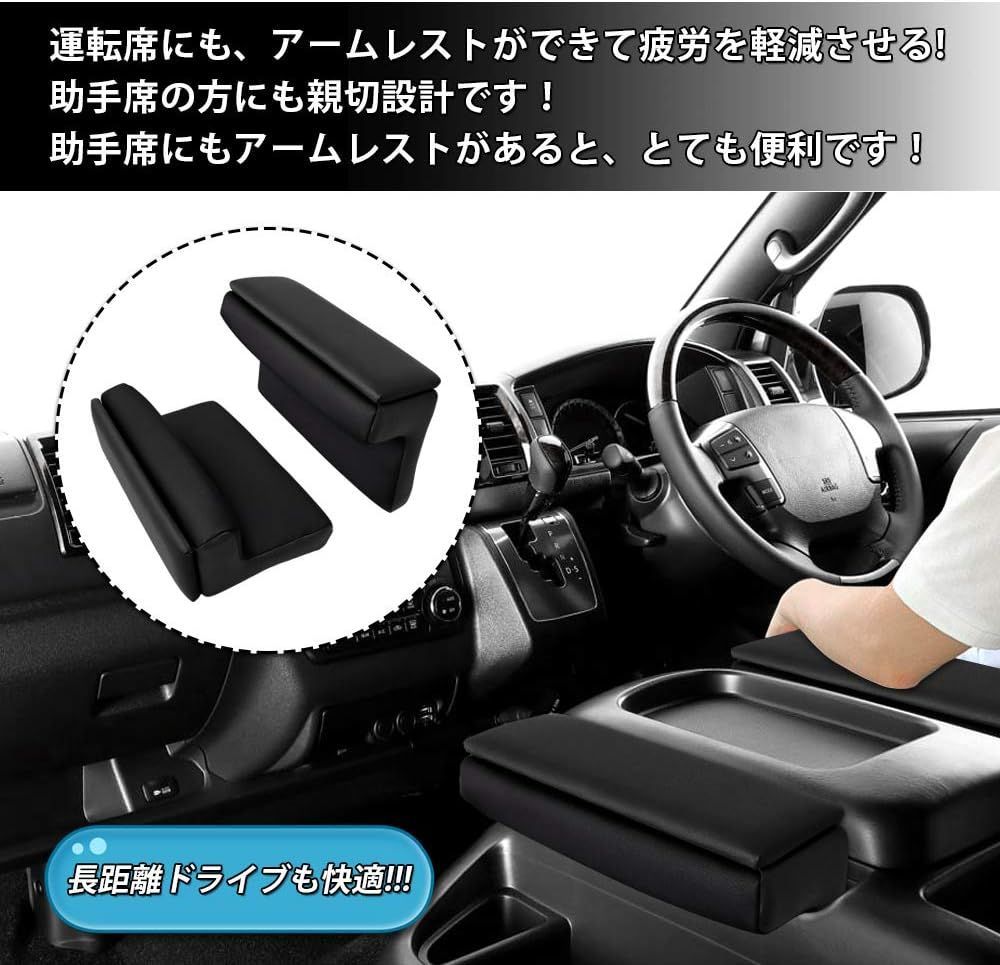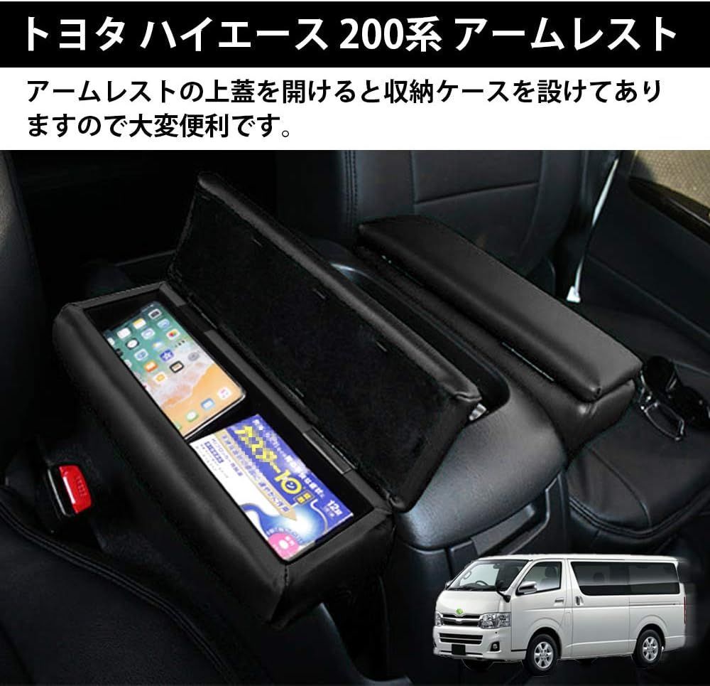 Auto Spec トヨタ ハイエース レジアスエース 200系 GL スーパーGL 1~6型 車 車用アームレスト コンソールボックス 車内収納ボックス HIACE H200 2004.8~ 車種専用設計 小物入れ 肘掛け 肘置き 本革調 多機能 収納アクセサリー 内装パーツ カスタムパーツ 装着簡単 落下防止 インテリア パーツ 2個セット (トヨタ ハイエース 200系, ブラック)