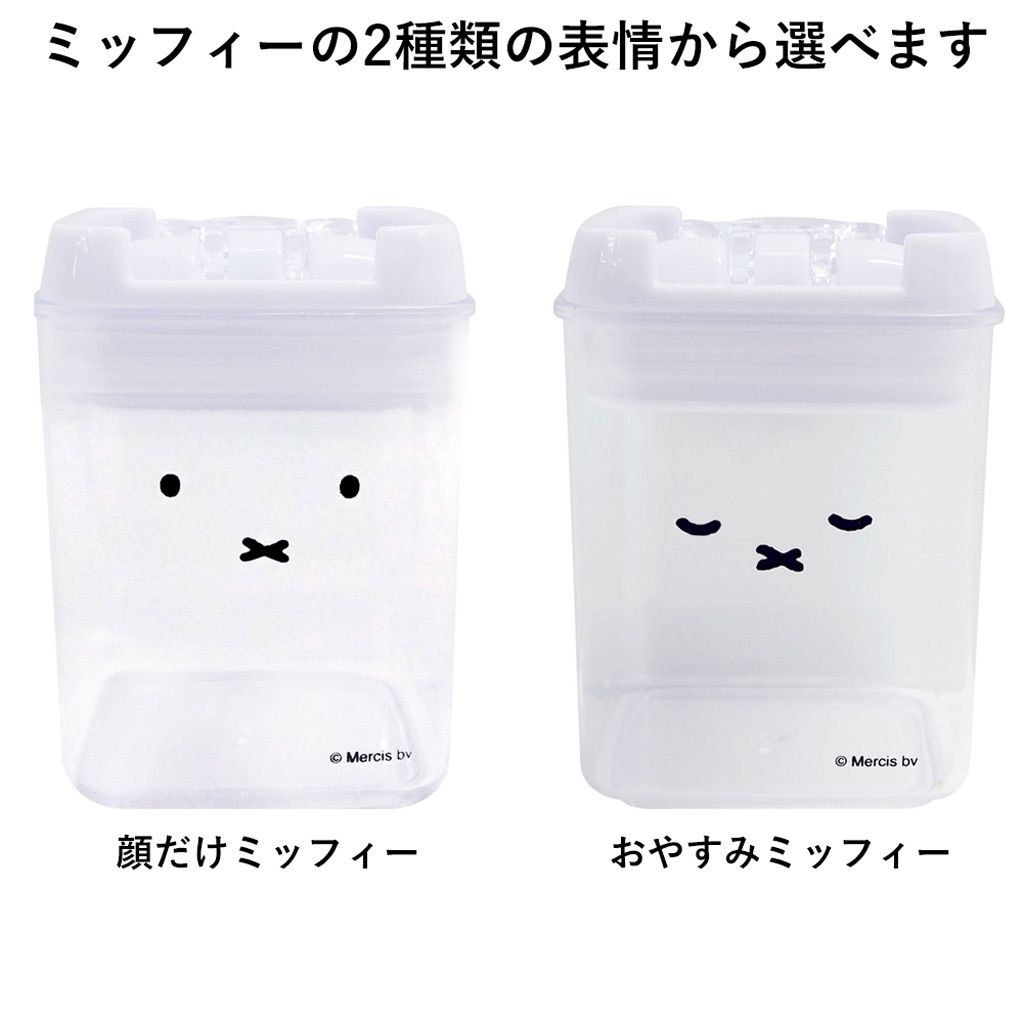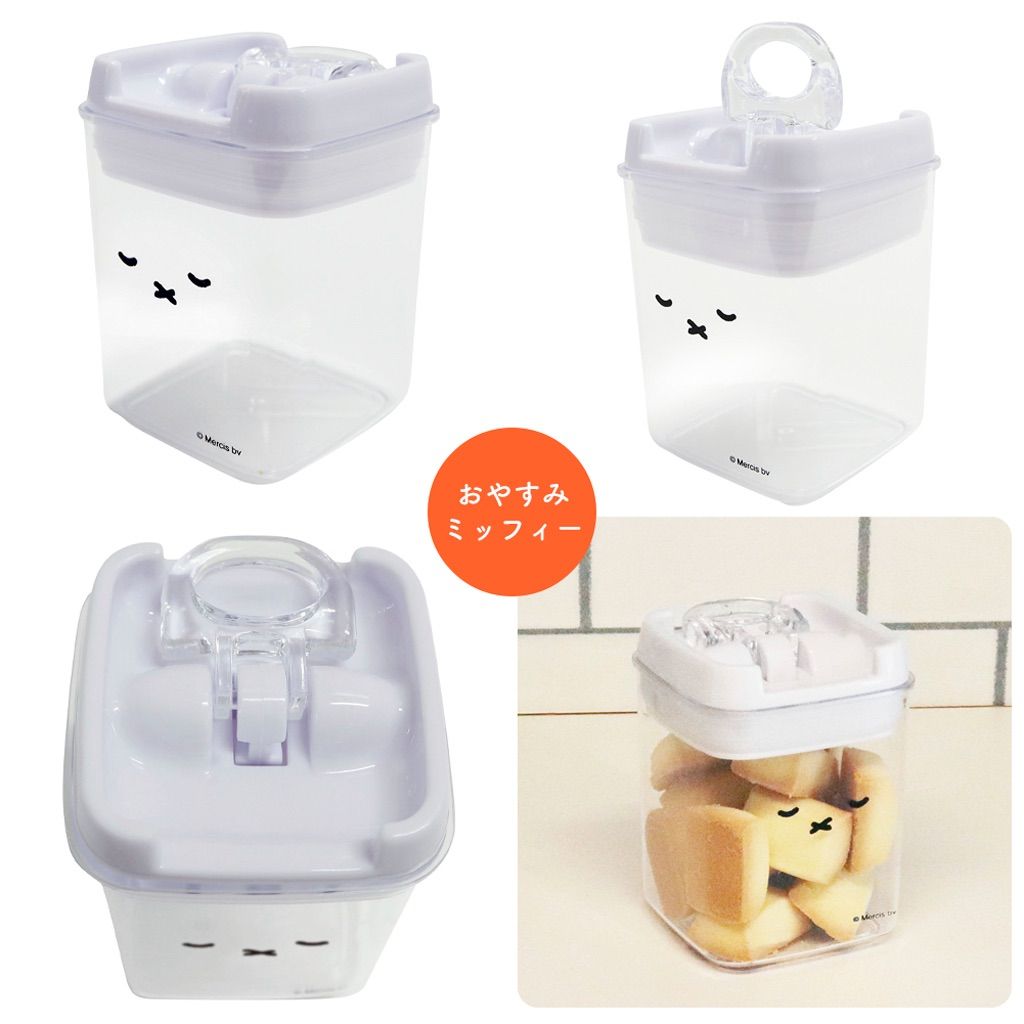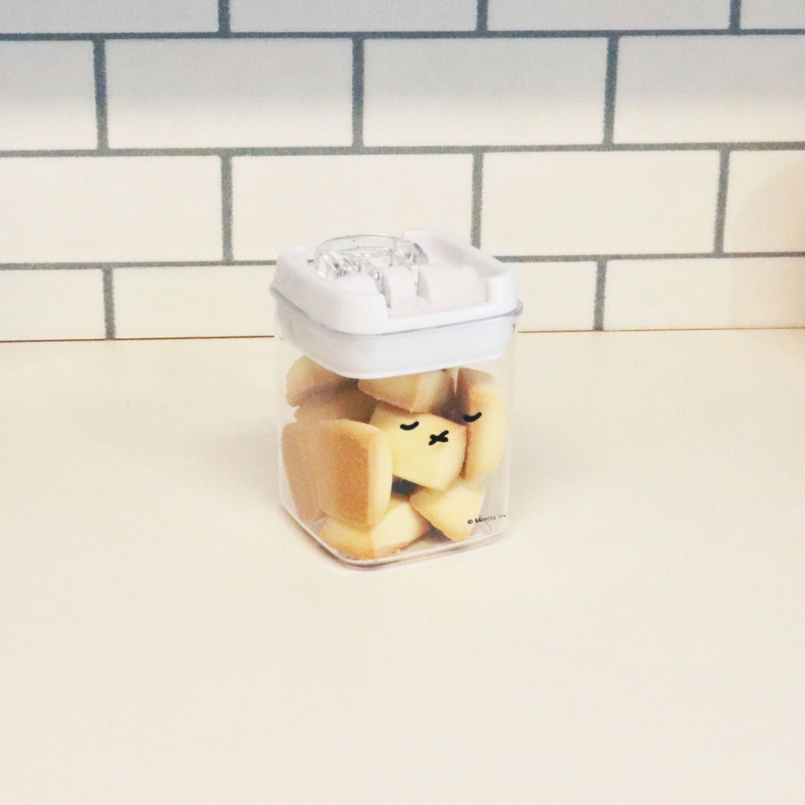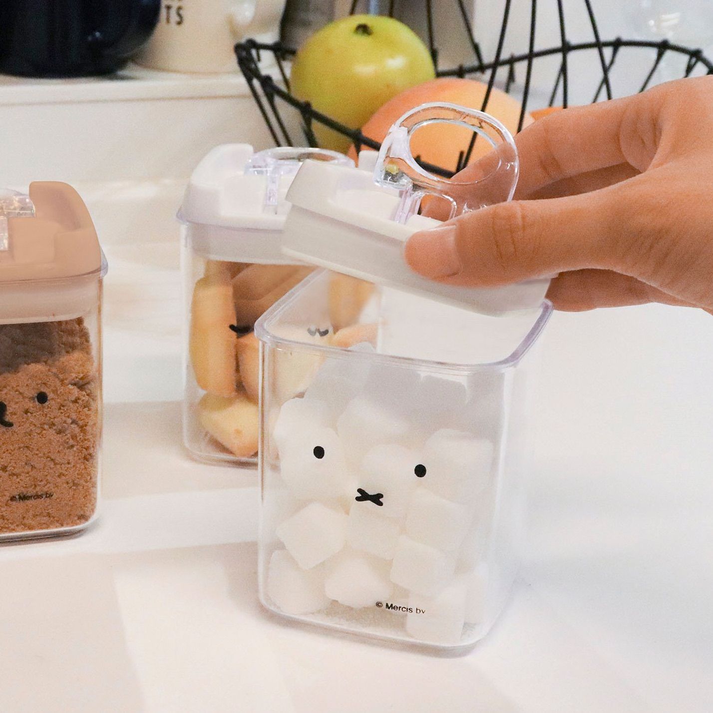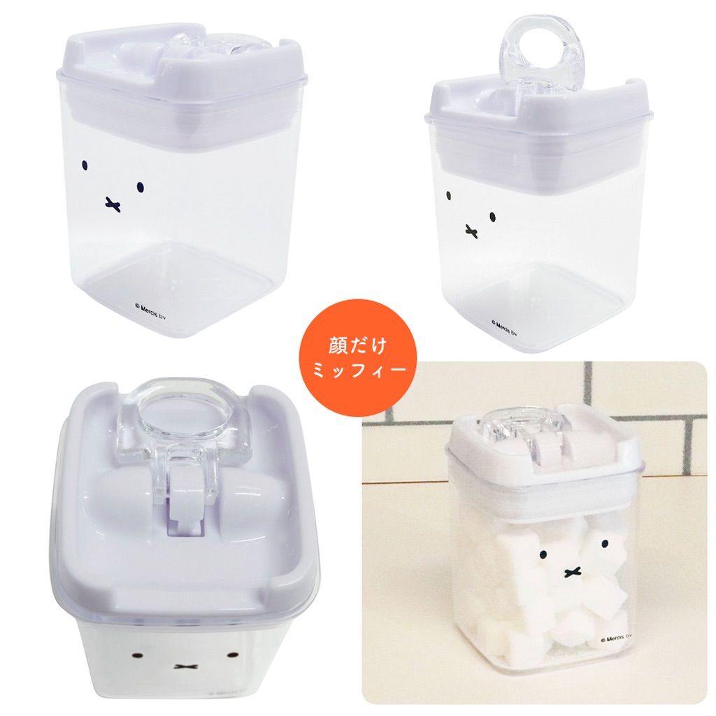 クリアな容器にミッフィーの顔がプリントされたシンプルでかわいいデザインのキャニスター。