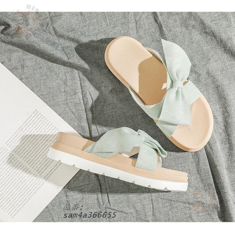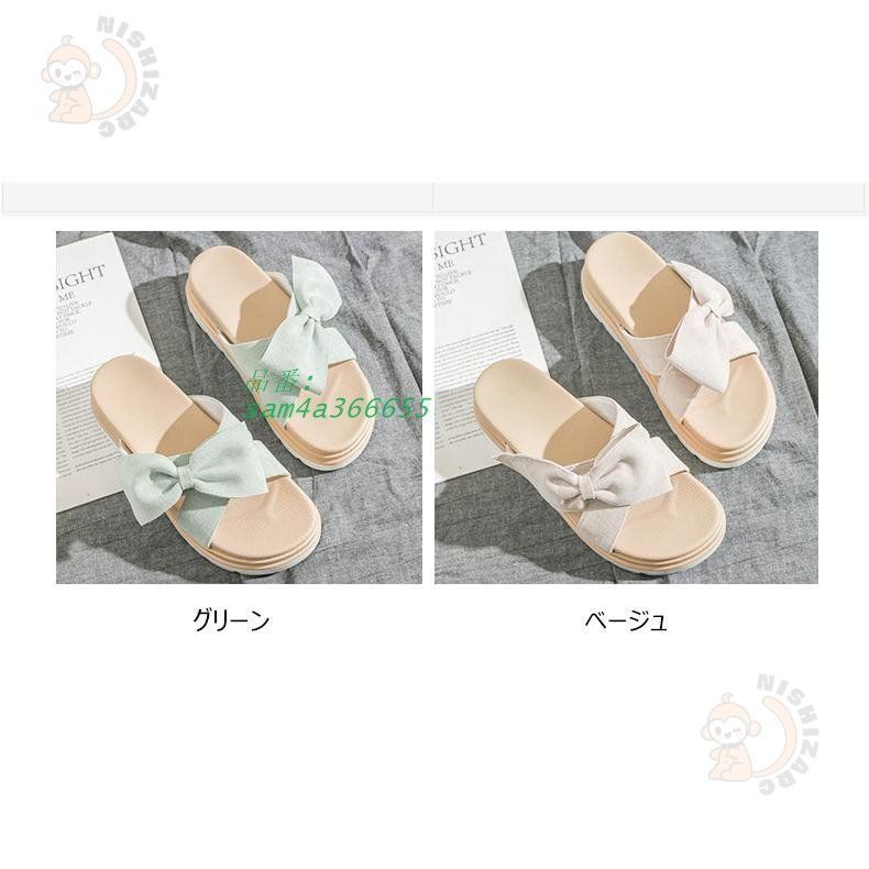 ミュール サンダル レディース 夏 厚底 ヒール 歩きやすい オシャレ 疲れない カジュアル 可愛い スリッパサンダル リボン 室外 外履き 美脚 ビーチサンダル
