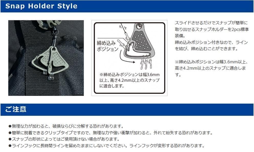 ●材質:[本体]POM / [ラインフック]TPS / [スナップホルダー]GFRP