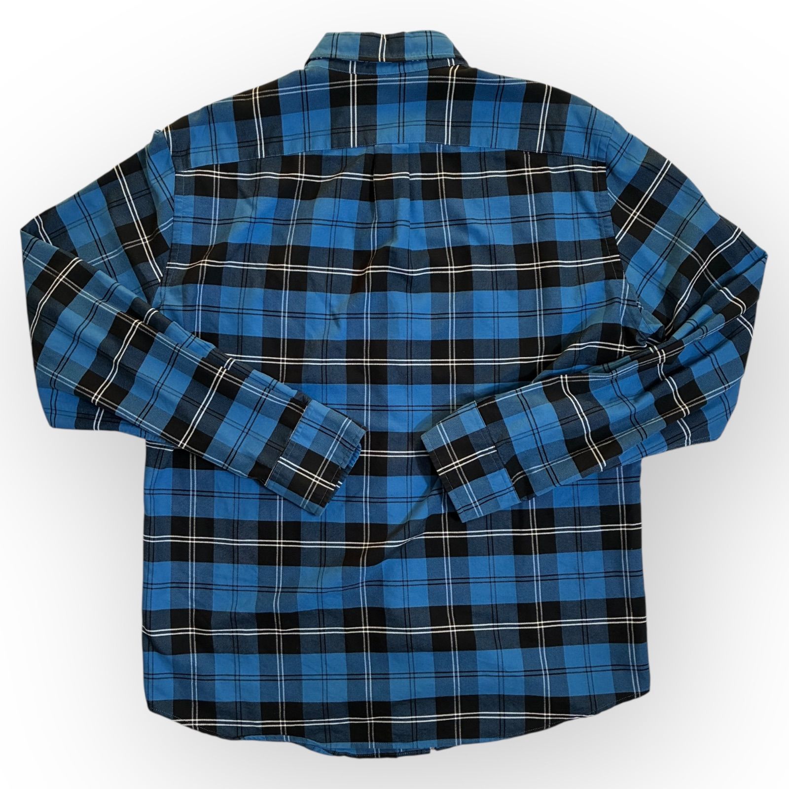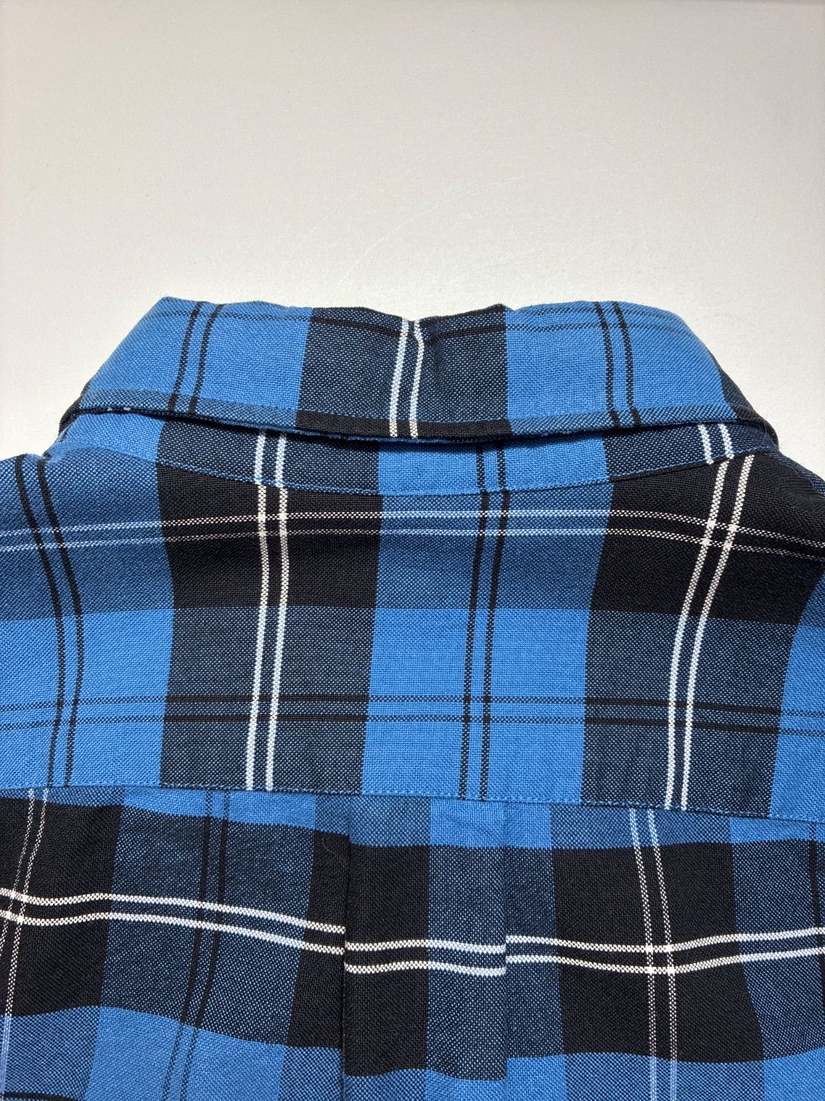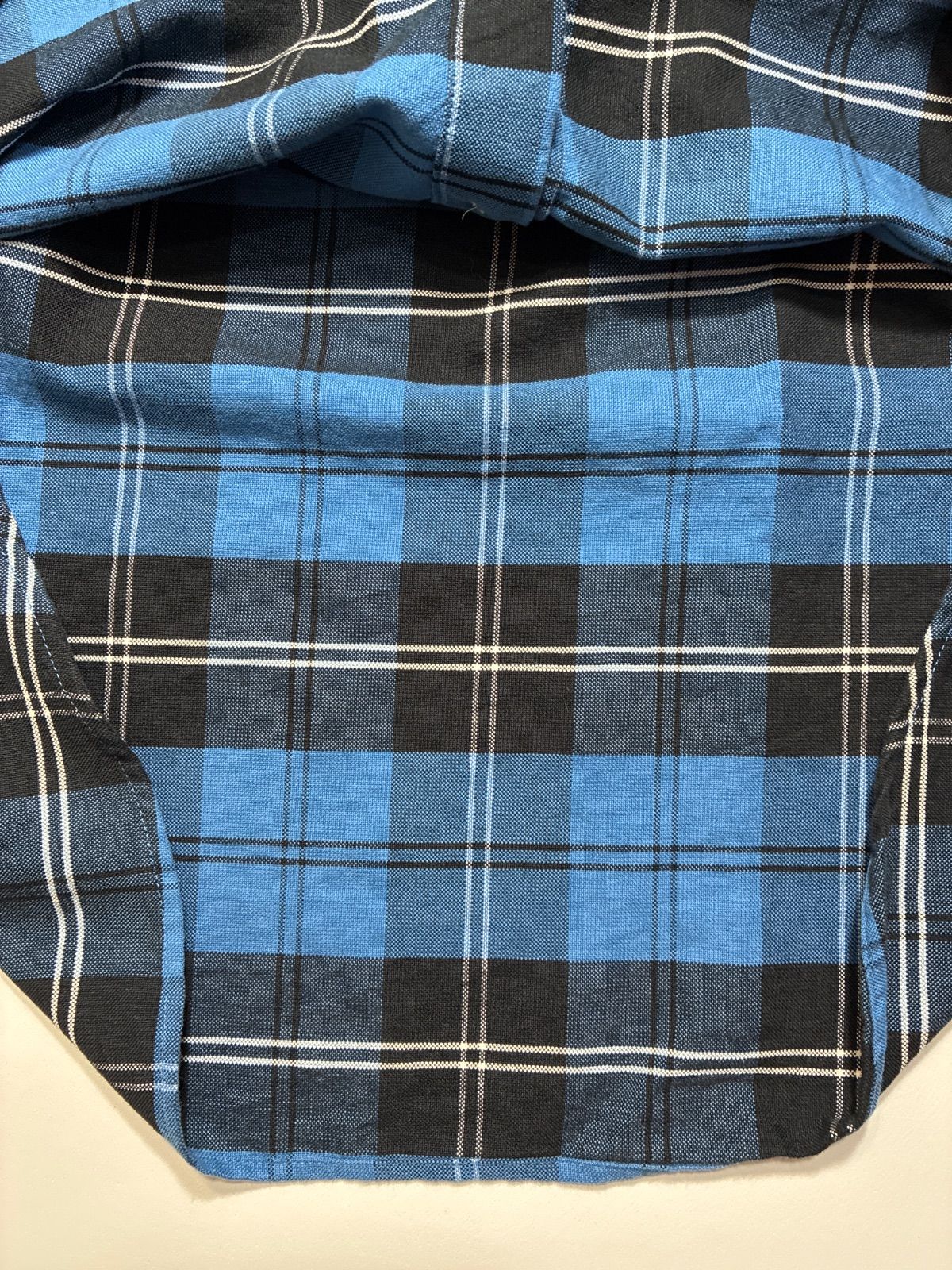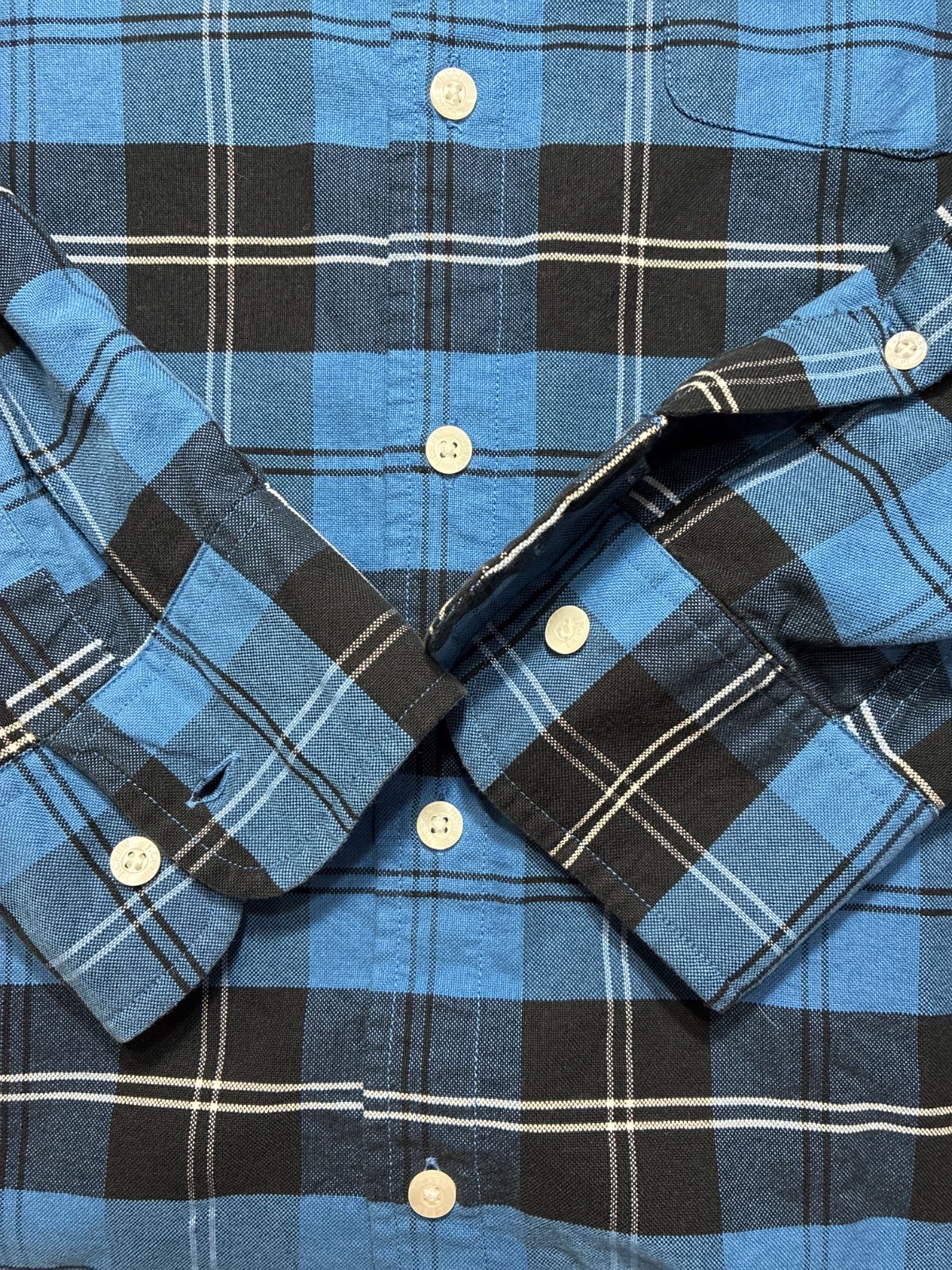 鮮やかなブルーとブラックのコントラストが美しいチェック柄のオックスフォードシャツです。