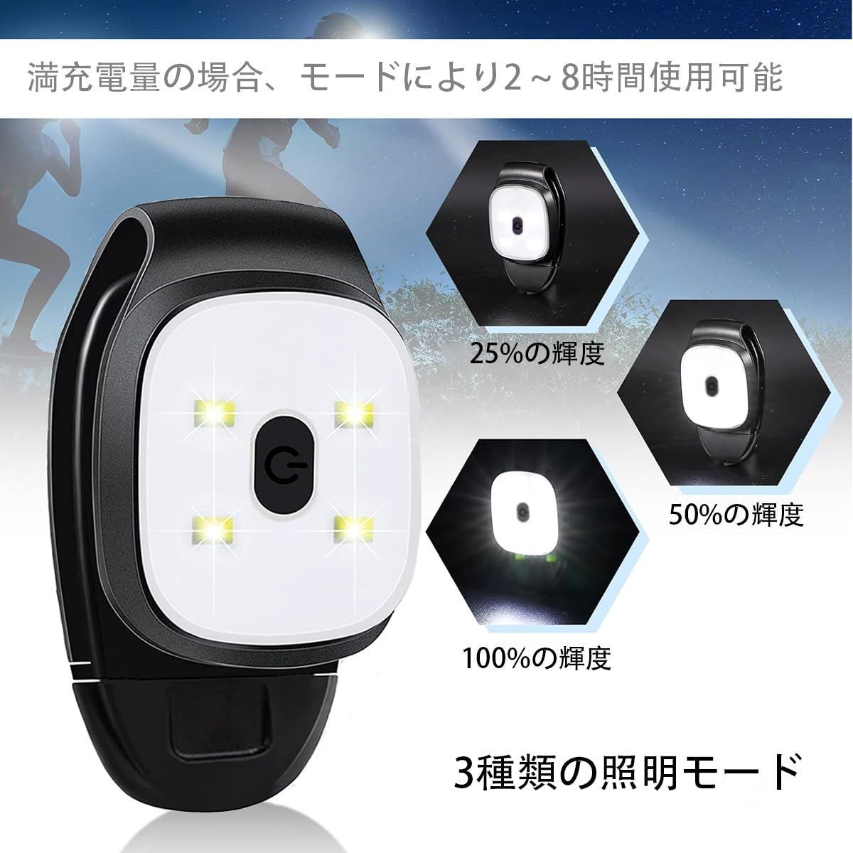 ランニングライト 2個入 LEDクリップライト USB 充電式 3種類の照明モード 夜間照明 発光 軽量 ランニングウォーキングライト ジョギング ハイキング キャンプ 犬の散歩に (2個入)