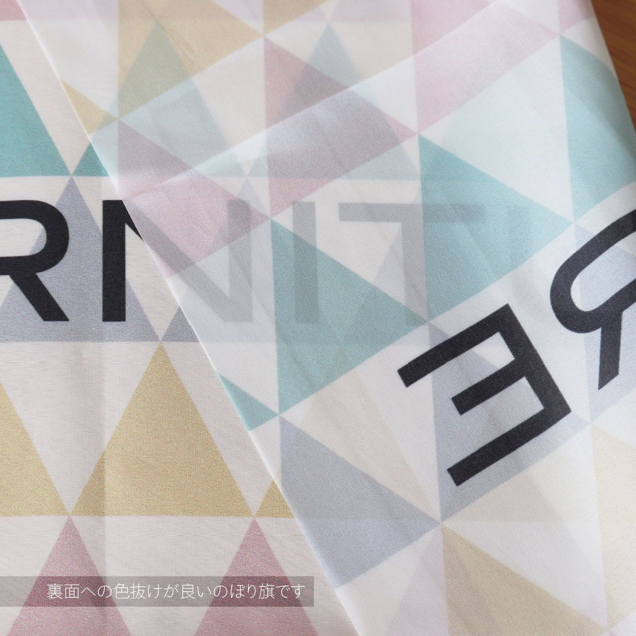一般的なのぼり旗によく使用されるポリエステル100%の生地で、裏面への色抜けの良いところが特徴です。薄いのに丈夫、軽量でよく風になびきます。