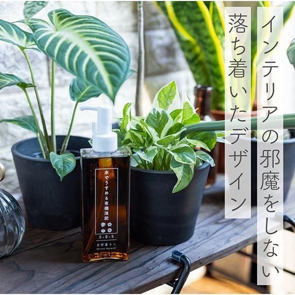 ワンプッシュするだけの簡単計量。 様々な植物に使える、自然暮らしの「水でうすめる有機液肥」