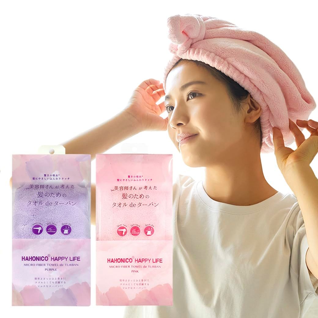 【ターバンタイプ】美容師さんが考えた髪のためのタオル de ターバン 吸水 速乾 タオルキャップ ヘアキャップ ヘアターバン 厚手 髪を素早く乾かす (パープル)