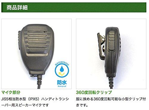 JIS5相当防水型(IPX5)ハンディトランシーバー用スピーカーマイクです