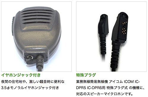 360度回転可能な服に挟める小型クリップ付きです。業務無線簡易無線機 アイコム ICOM IC-DPR5 IC-DPR6用 特殊プラグ式 の機種に、対応のスピーカーマイクロホンです