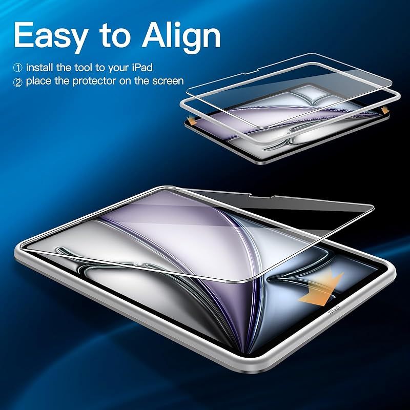 JETech iPad Air用 13インチ M3/M2 (2025/2024) 液晶保護フィルム ガイド枠付き 強化ガラスフィルム HDクリア 2枚セット