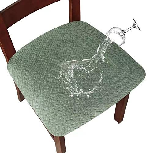 LLZRBHD 椅子カバー 4枚, チェアカバー 防水伸縮性素材 耐久性洗えると取り外し ダイニングルームチェアカバー用防水シートカバーダイニングチェアシートカバーキッチンチェアカバースリップカバー (グリーン)