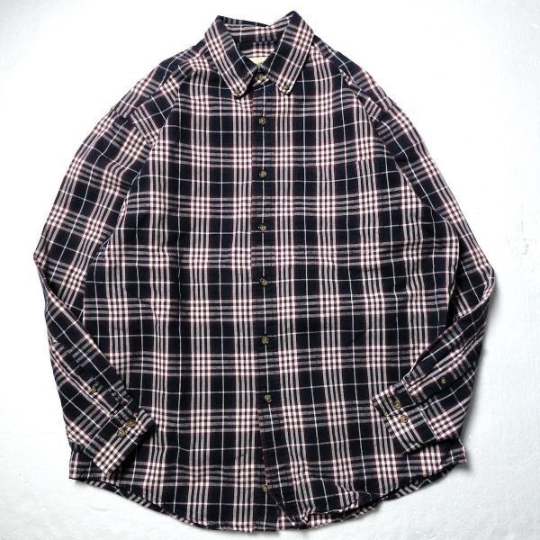 配色の良いネイビーベースのチェックオックスフォードシャツ、