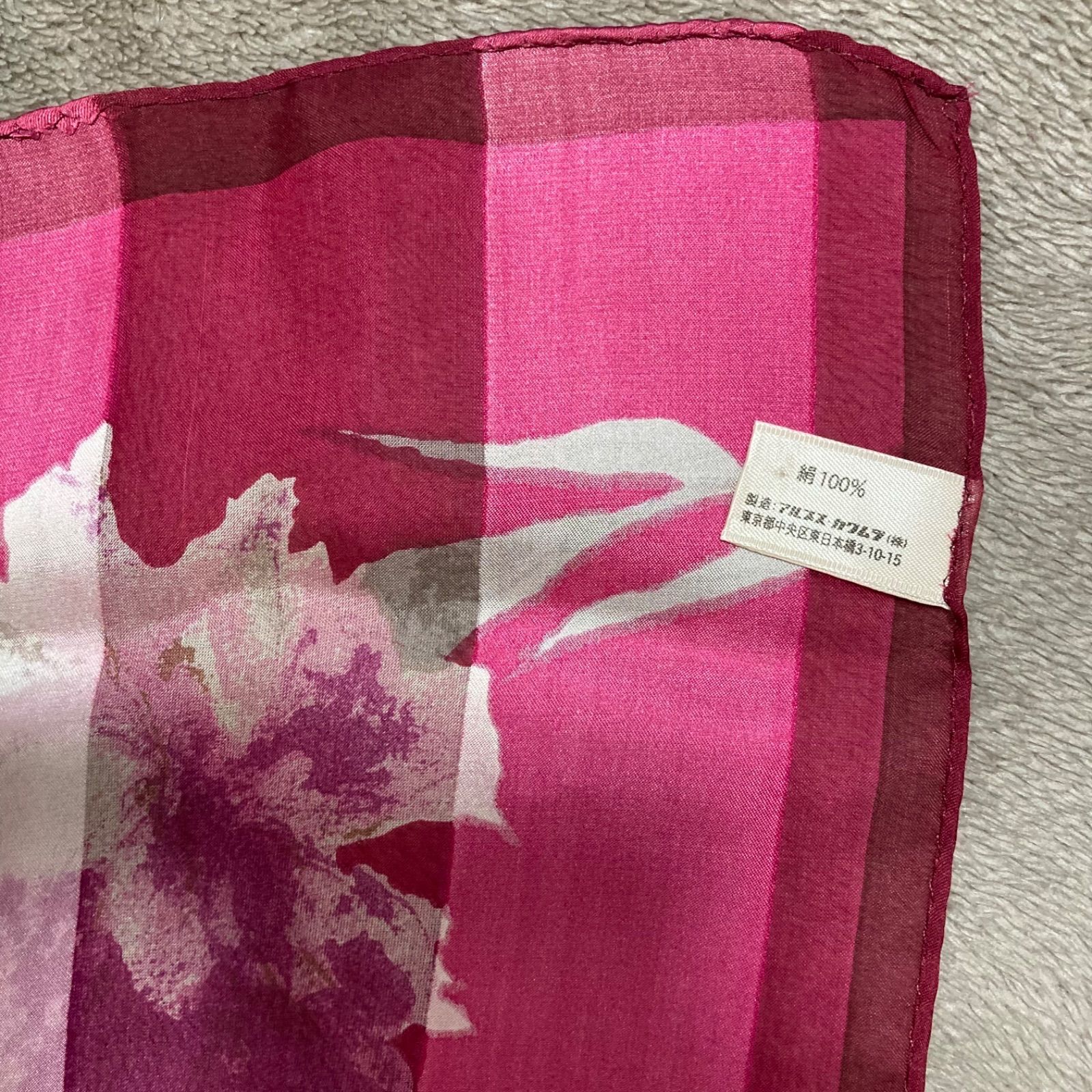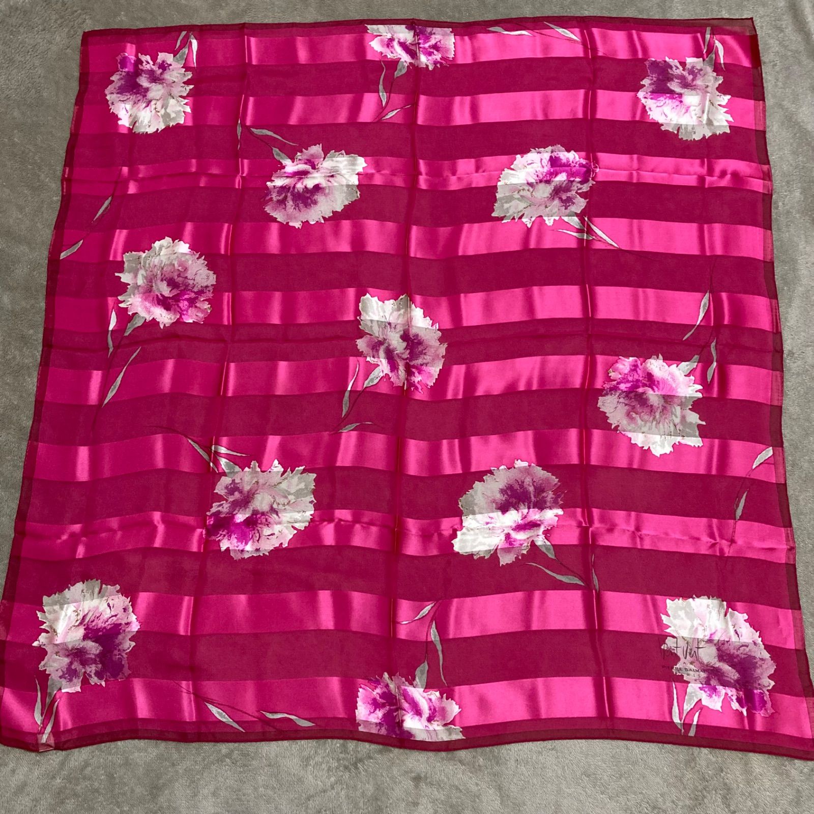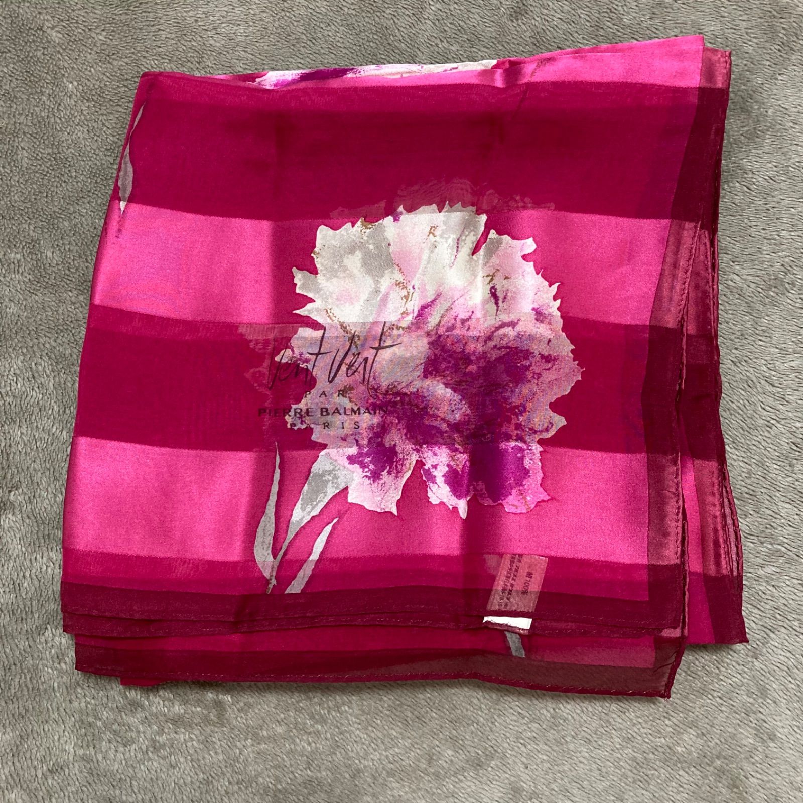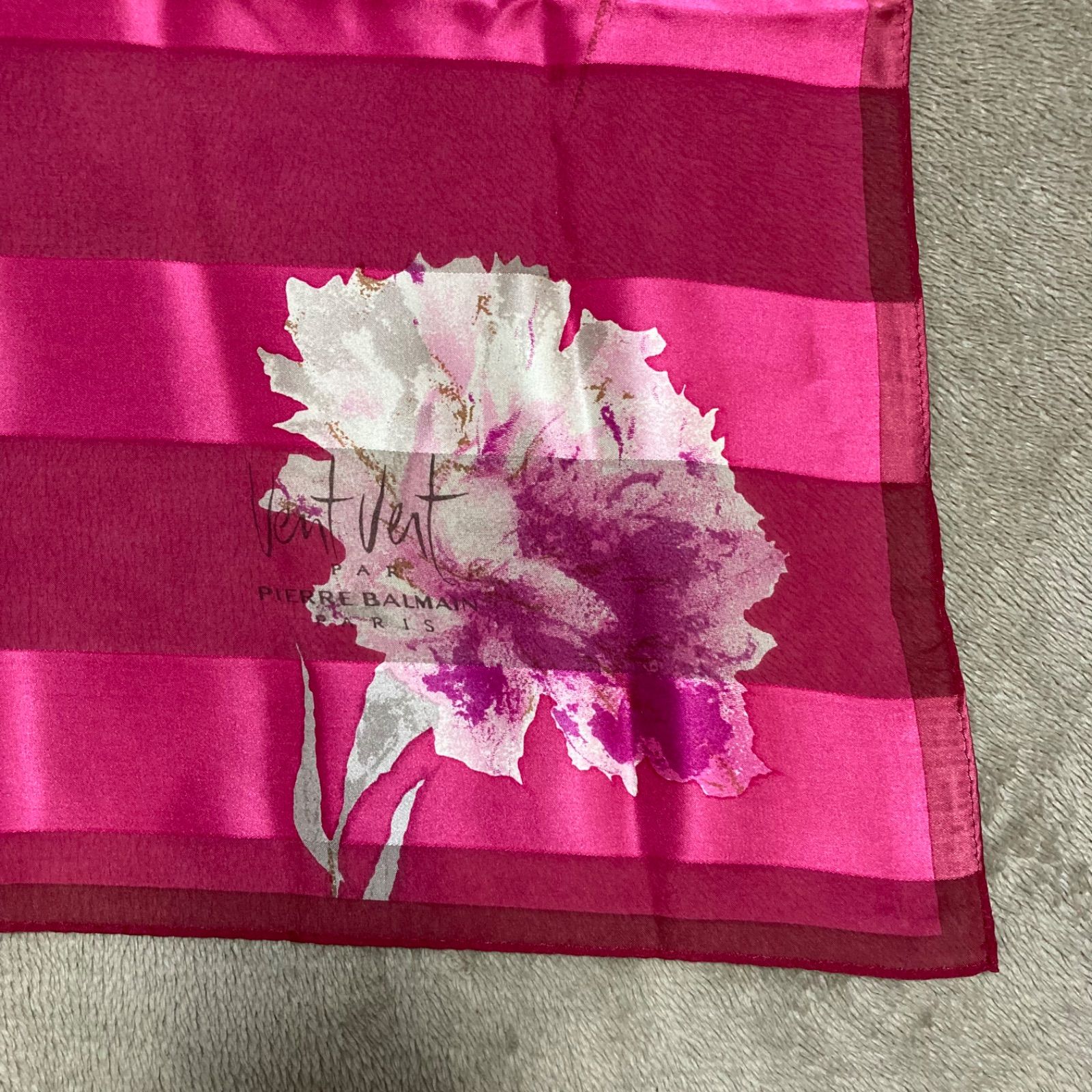 ピエールバルマン シルク スカーフ 絹 PIERRE BALMAIN 大判 ピンク お花 花柄 大判スカーフ SILK silk