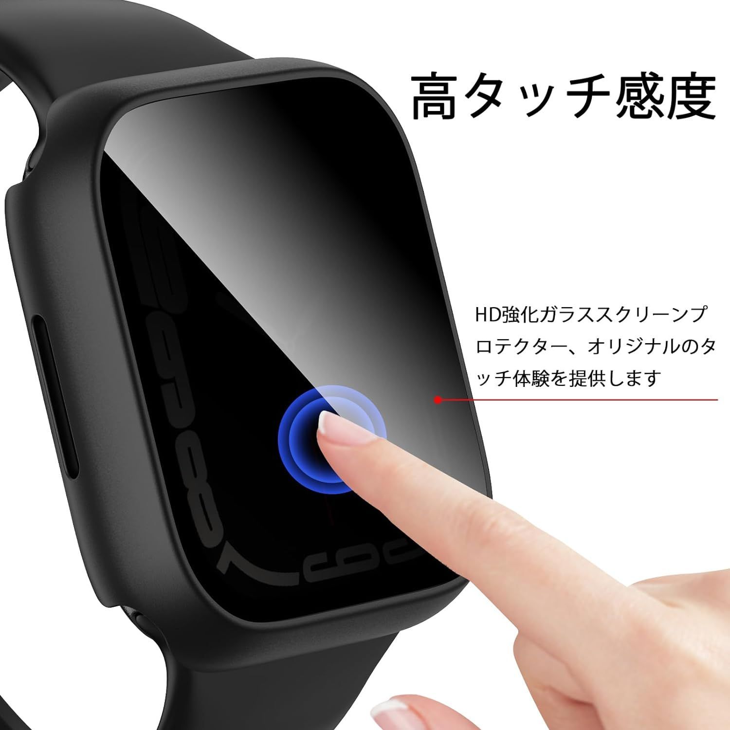 【全面保護カバー】 このケースは、耐傷性と耐衝撃性に優れたPC(ポリカーボネート)素材のフレームと、硬度9Hの強化ガラス液晶保護フィルムを使用しています。バンパーだけでなく、フルカバータイプの保護ケースで、Apple Watchの本体を傷や衝撃からしっかりと保護します。デザインはApple Watch本体の側面を完全にカバーしており、見た目も一体感があります。落下や傷などの予期せぬ事故からApple Watchを守り、長い間安心して使用できる製品です。