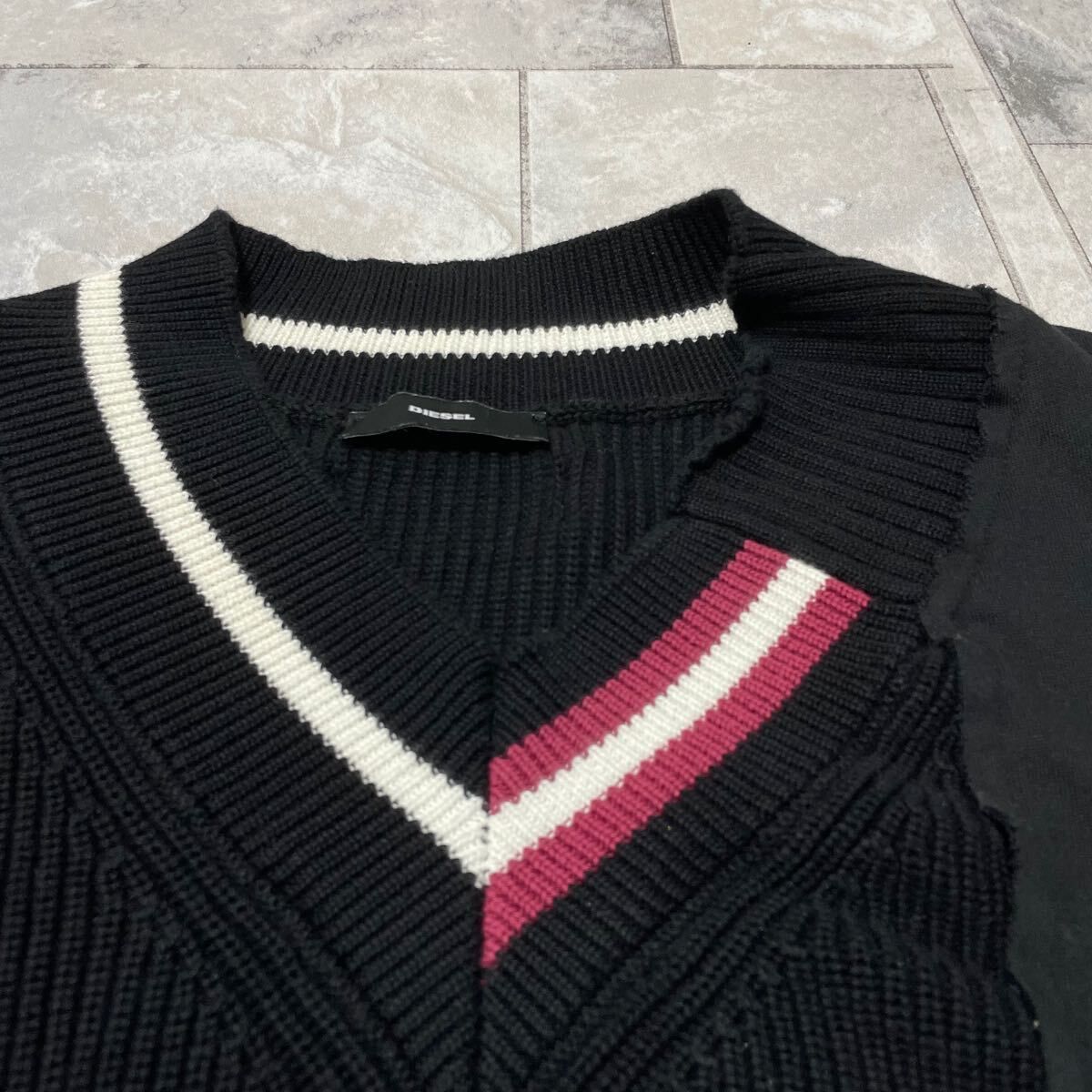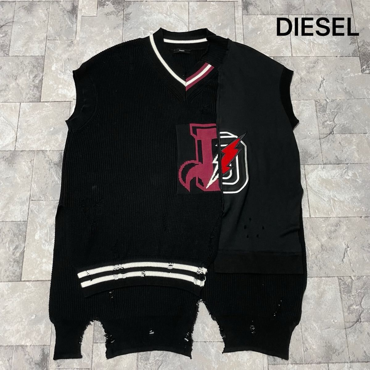 DIESEL ディーゼル ニット セーター ベスト トップス ダメージ加工 ユニセックス 異素材コンビ 半袖 ロングニット ビッグシルエット ビッグシルエット 定価3万程 サイズXXS 玉SS2633