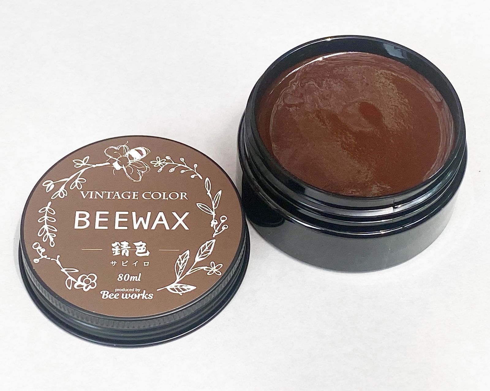 ビンテージカラー 蜜蝋ワックス 錆色(サビイロ/ダークブラウン)BEEWAX 80ml)
