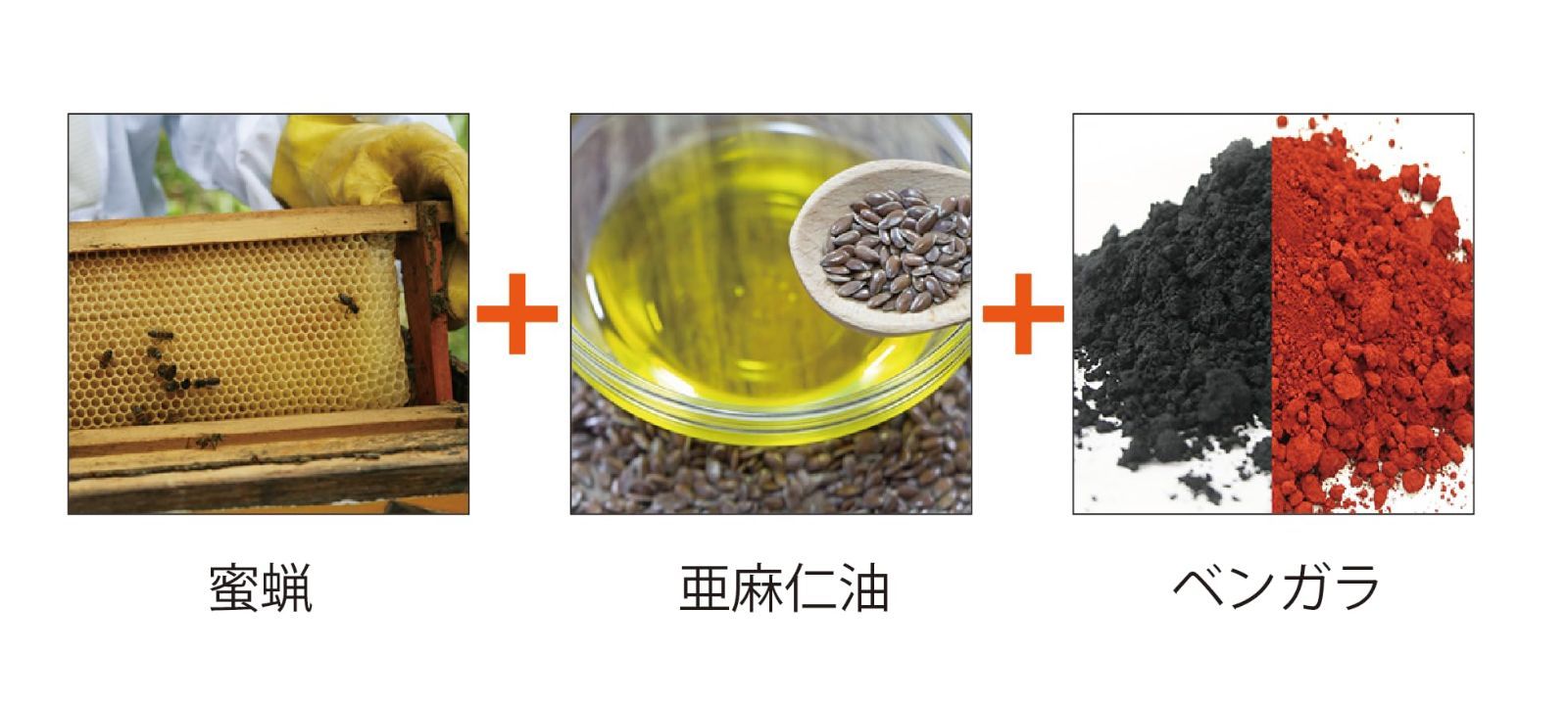 赤いベンガラと黒いベンガラ(鉄黒)を顔料とした蜜蝋ワックスです。伝統的な民家や町屋に見られるヴィンテージカラーを手軽に再現できます。