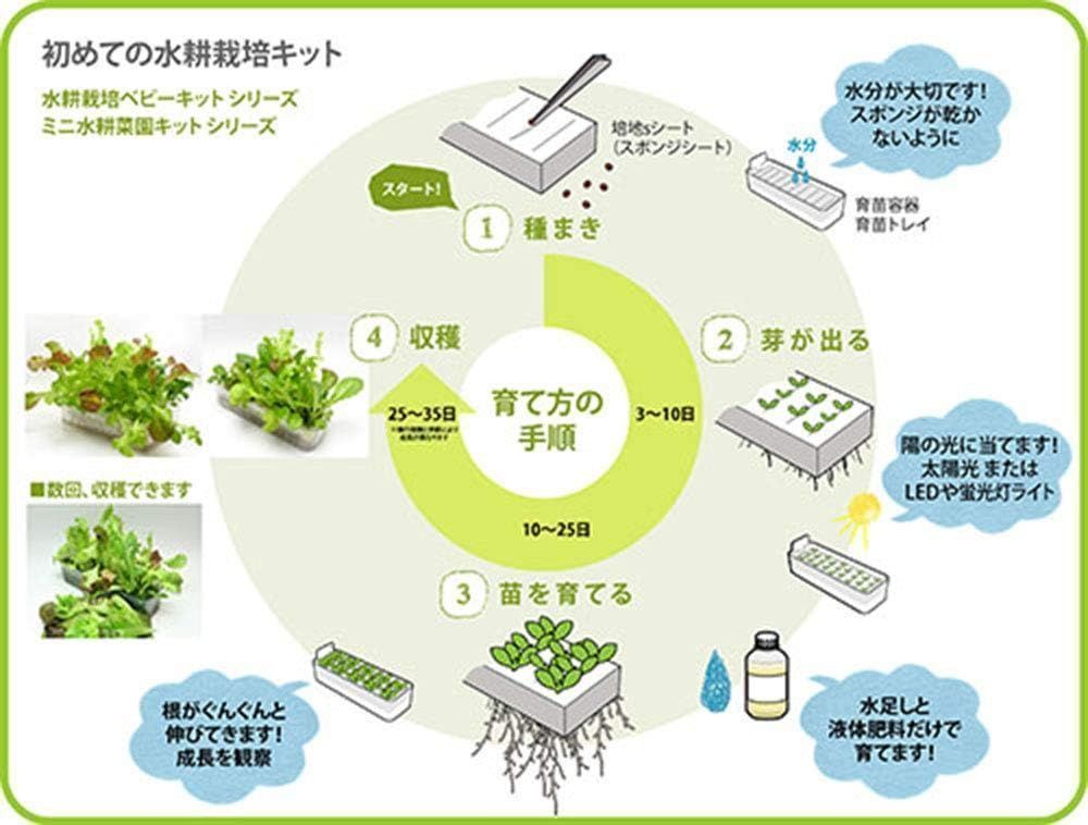 土を使わず、お水と液体肥料で育てる水耕栽培キット サイズ:22×15×6cm