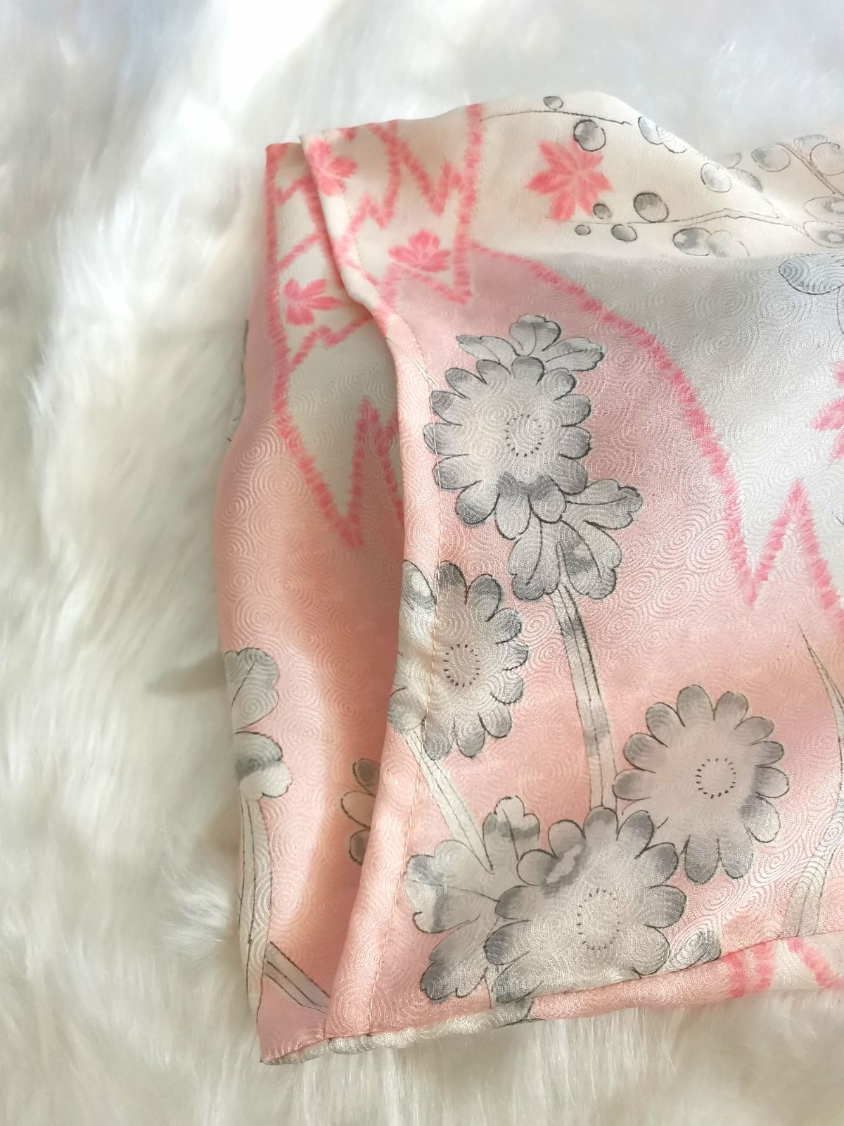 着物の反物から作りました。襦袢用正絹布。柄がちがいますので唯一無二のハンドメイドになります。手作り品にご理解の上ご購入お願い致します。
