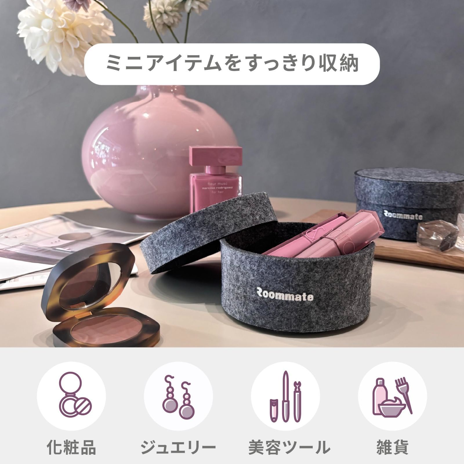 【高品質3mmウールフェルト素材】 柔らかく丈夫なウールフェルトを採用。傷つきにくく、軽量で長持ちする素材で、大切な小物を優しく収納。