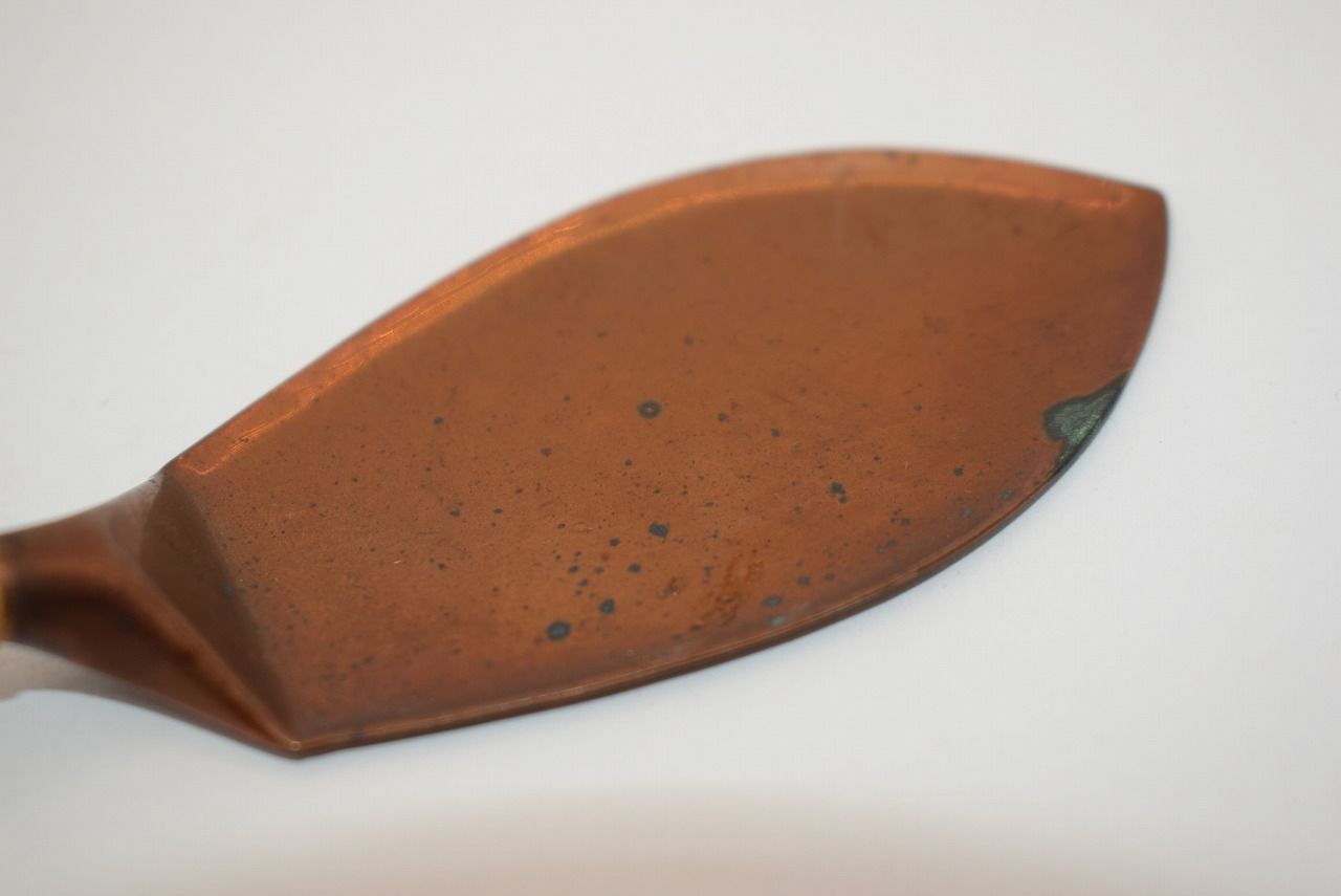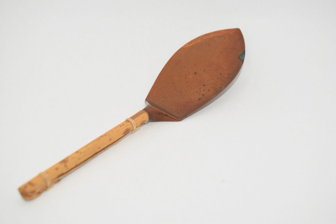 茶道具 灰押 連弁 銅製 灰匙 茶道 (3) 10-9020-03 3.6×14.1cm 高さ3.5cm 汚れ、錆、擦れはありますが、本体はしっかりしています、お稽古にお使いになるには差し支えありません。