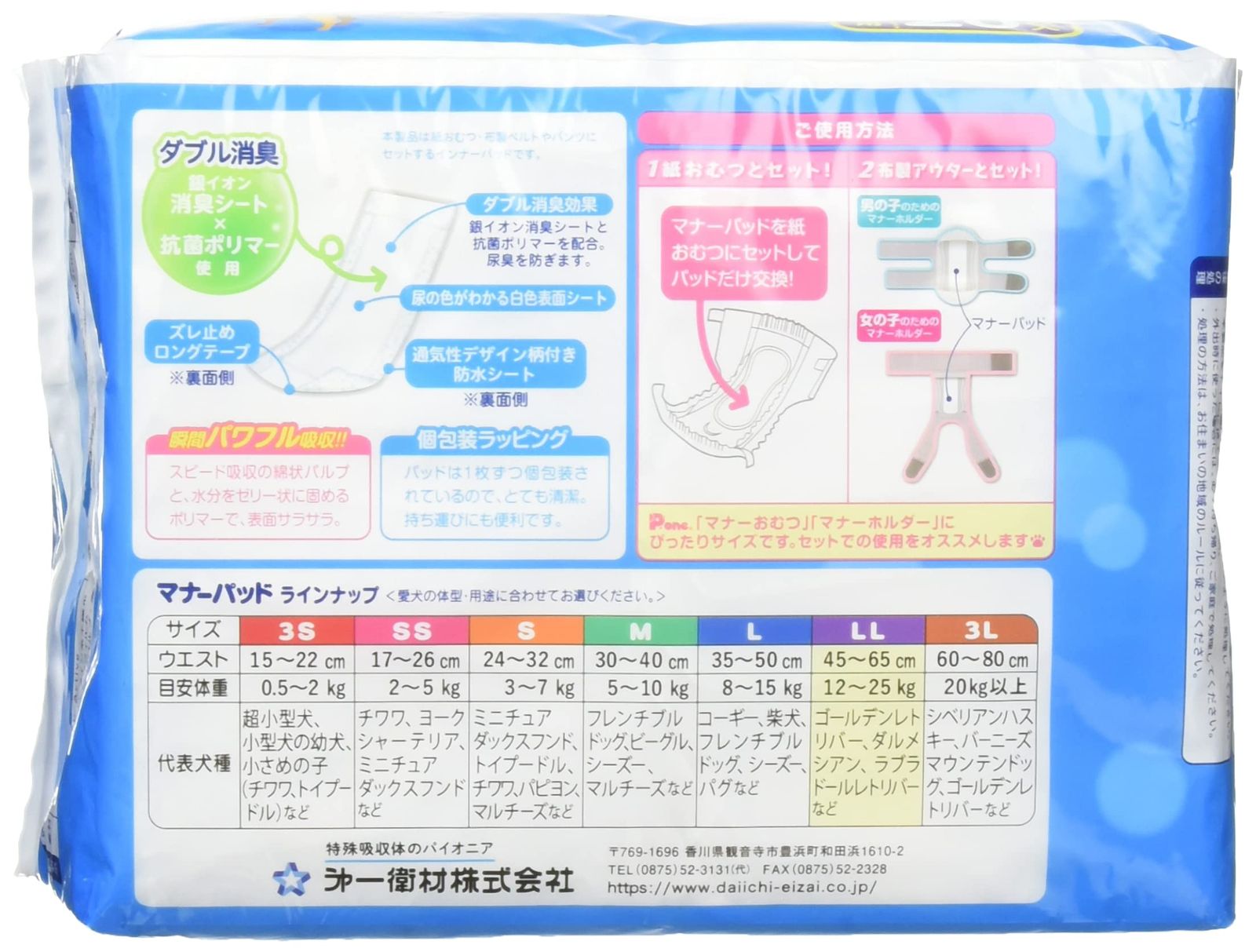 おしっこを瞬間パワフル吸収! 愛犬の生理・マーキング・おもらし・介護のほか、お出かけ時のマナーなど様々なシーンで大活躍の「マナーパッドActive」のお徳なビッグパック。銀イオン消臭シートと抗菌ポリマーの力でニオイ対策も安心。専用(別売)のマナーホルダーActiveや、マナーおむつとの併用で衛生・経済的にご使用頂けます。