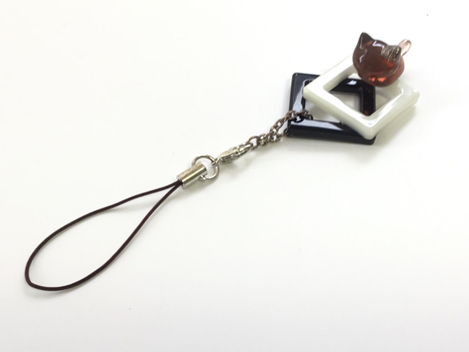ちょこんと四角いプレートに飛びのった猫ちゃんのストラップです。