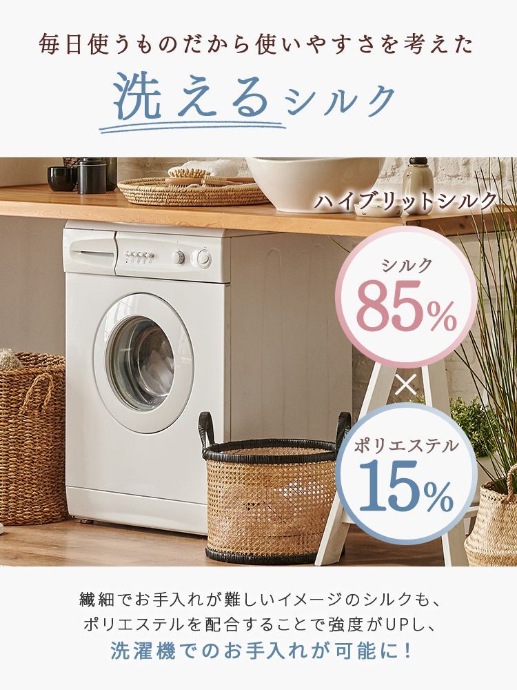 シルク85%×ポリエステル15%のハイブリット素材を採用。
