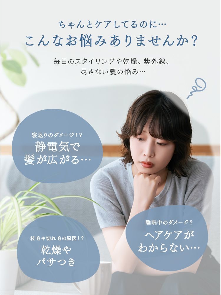 保水量が高いため、静電気が起こりにくく、就寝中の摩擦や乾燥から髪をしっかり守ります。