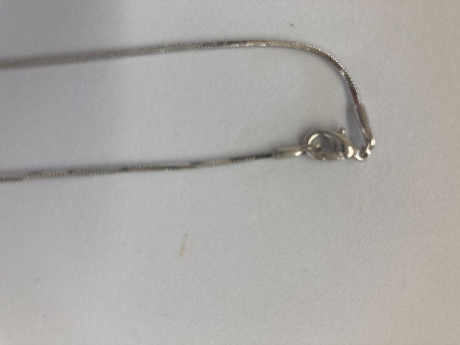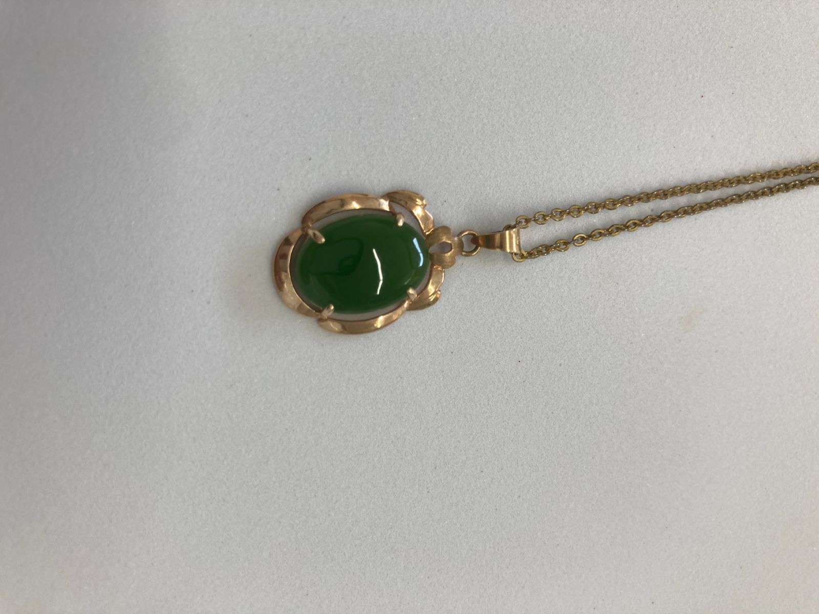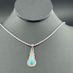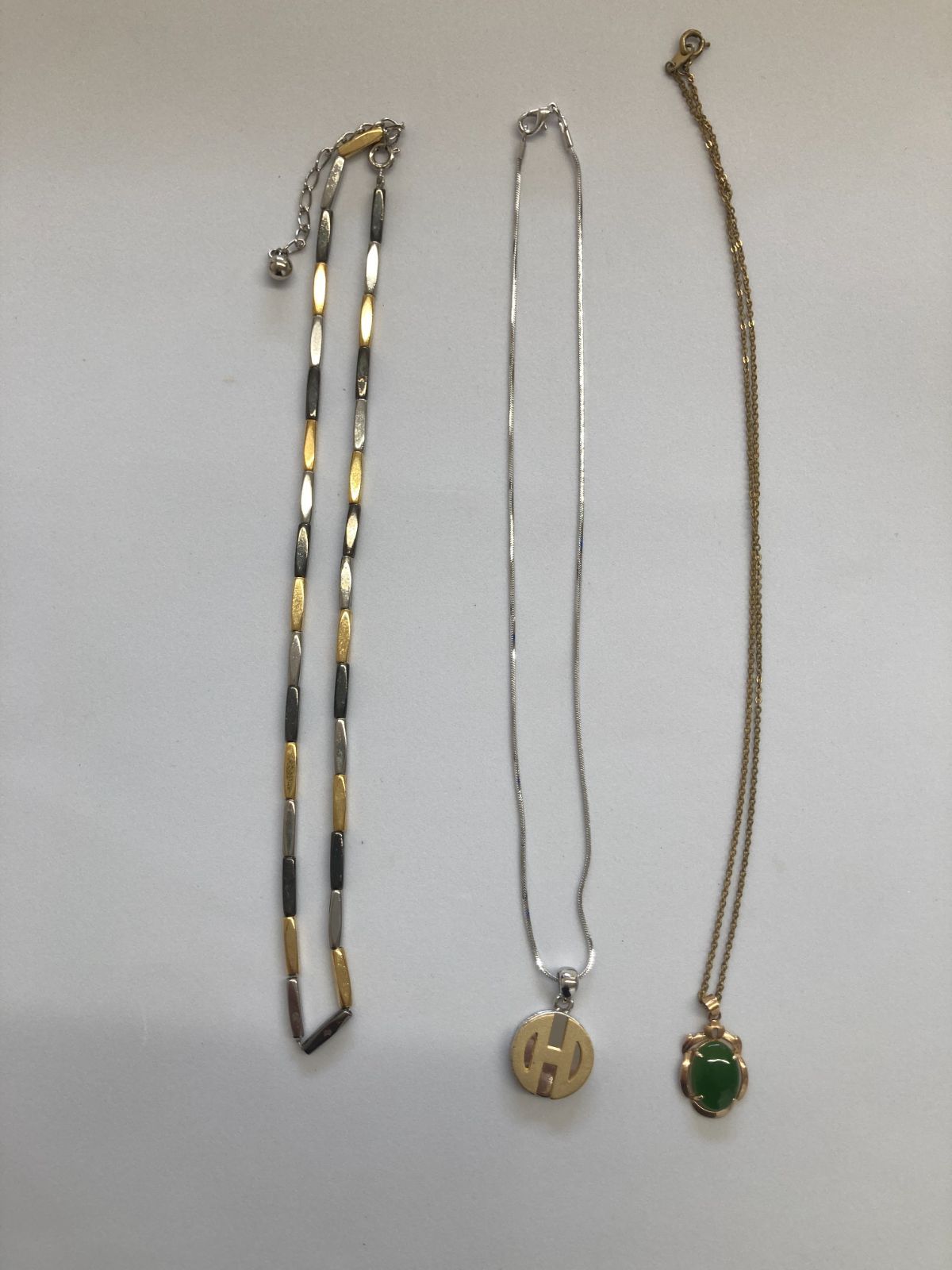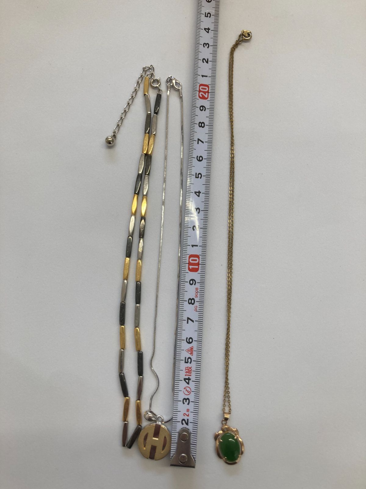 ②銀色のチェーンに丸いペンダントトップが付いております。