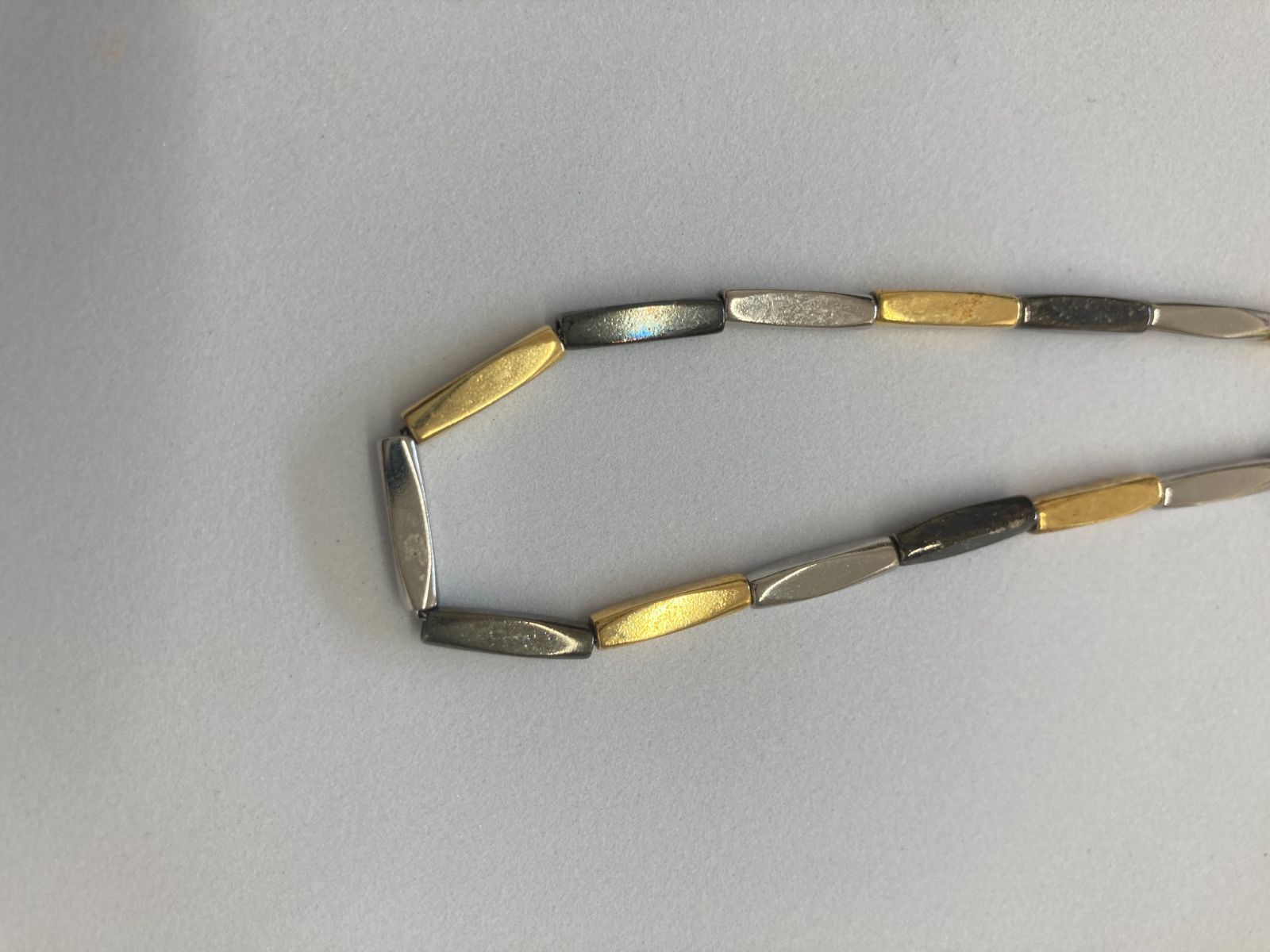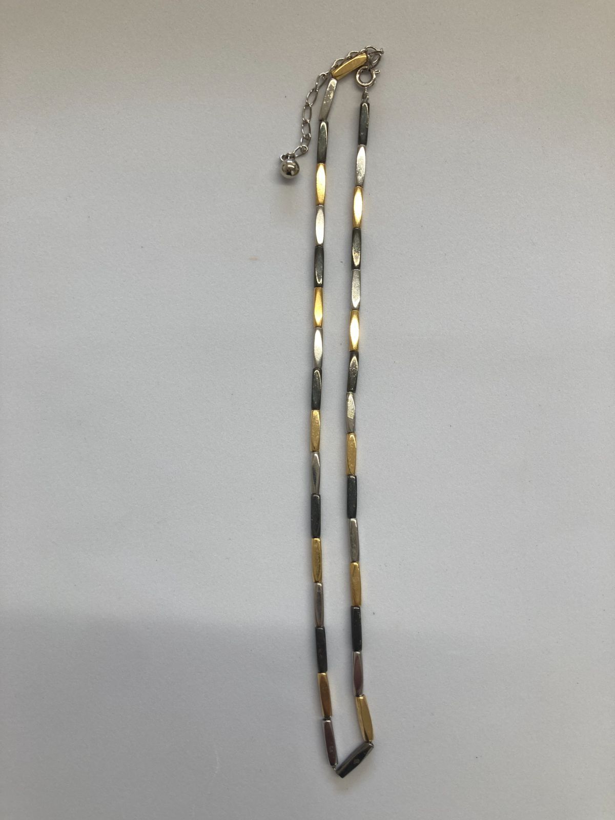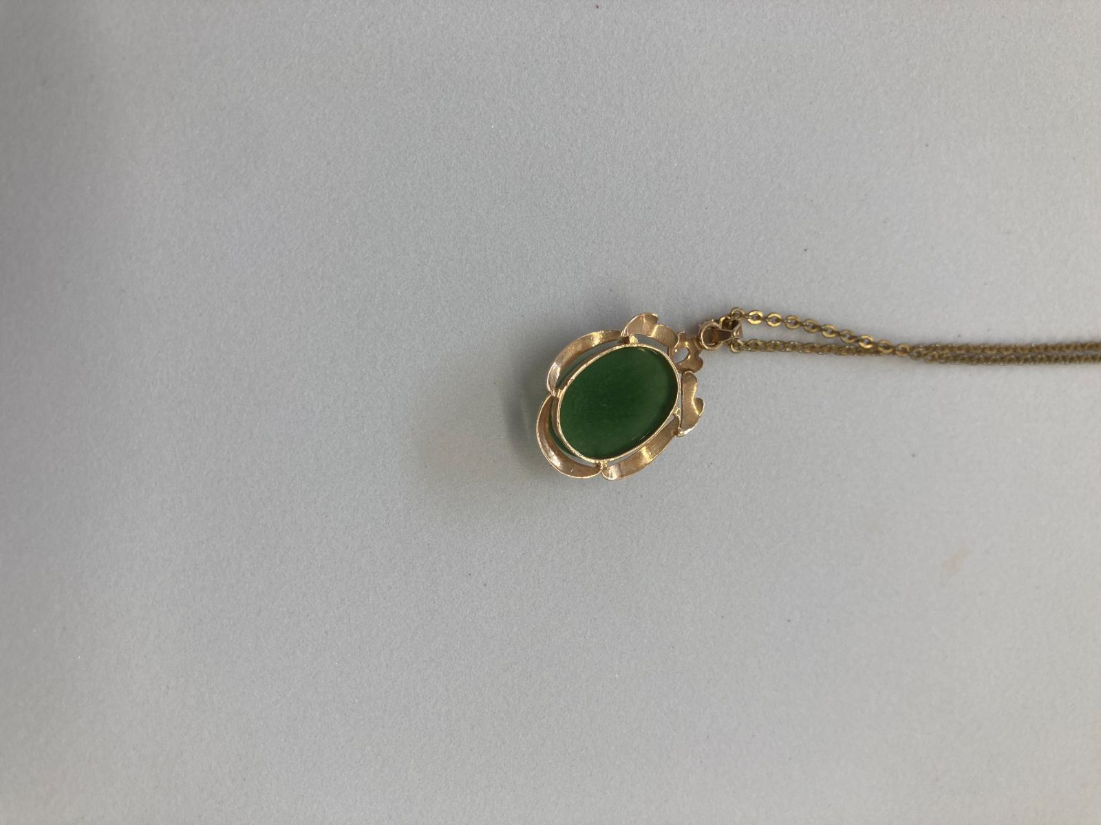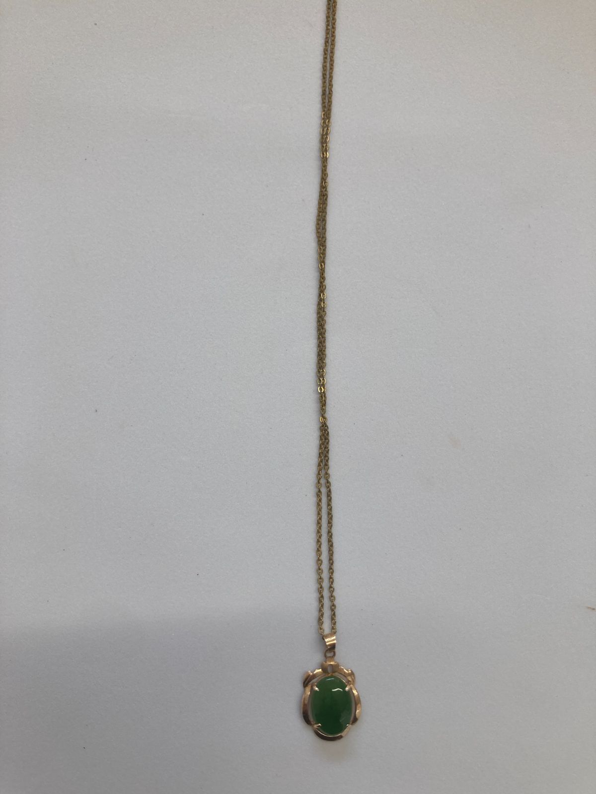 ②銀色のチェーンに丸いペンダントトップが付いております。