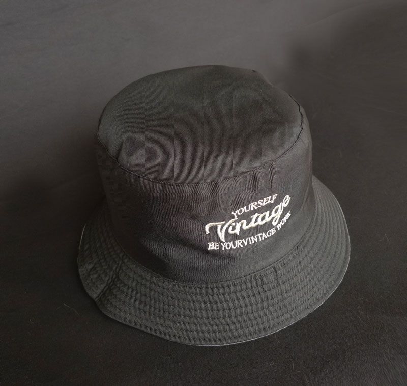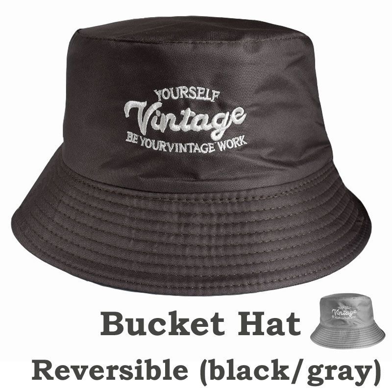 リバーシブル バケットハット ブラック グレー vinterge 刺しゅう バケハ ストリート スケーター アウトドア