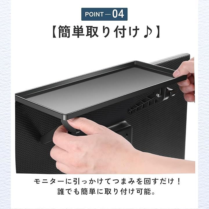 「簡単取り付け」モニターに引っかけてつまみを回すだけ。誰でも簡単に取り付け可能。