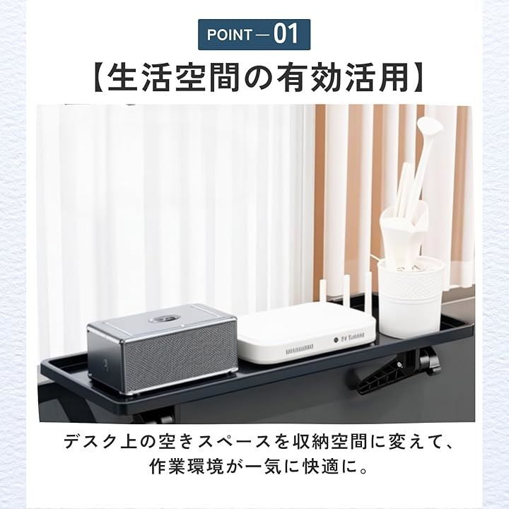 「生活空間の有効活用」デスク上の空きスペースを収納空間に変えて、作業環境が一気に快適に。
