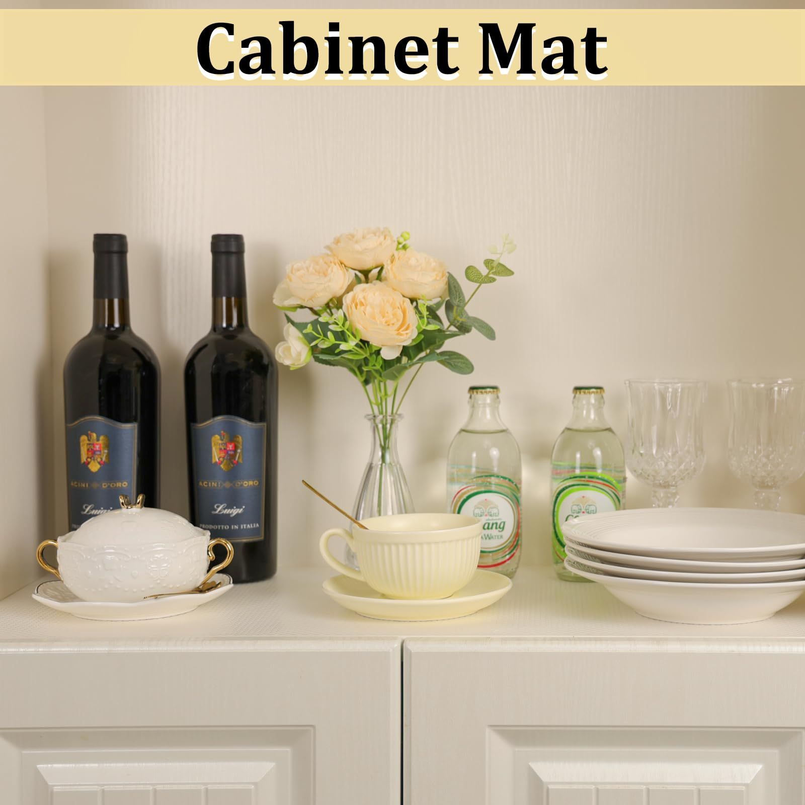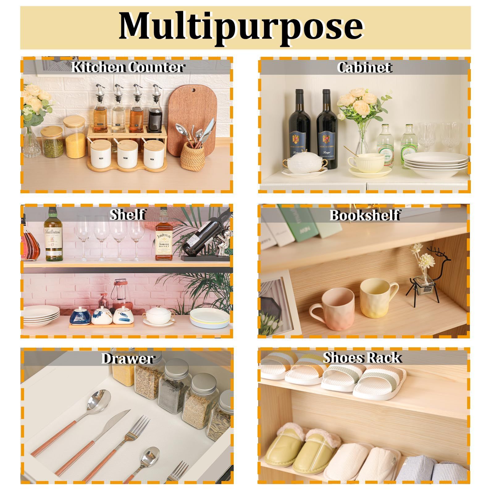 [汎用性] キッチンボード・食器棚などに、敷いておしゃれで便利です。ワードローブ 、ドレッサーや引き出し、 テーブルの上や本棚 、キッチン台 、キャビネット、 シューズクローゼットにも敷くことができます。