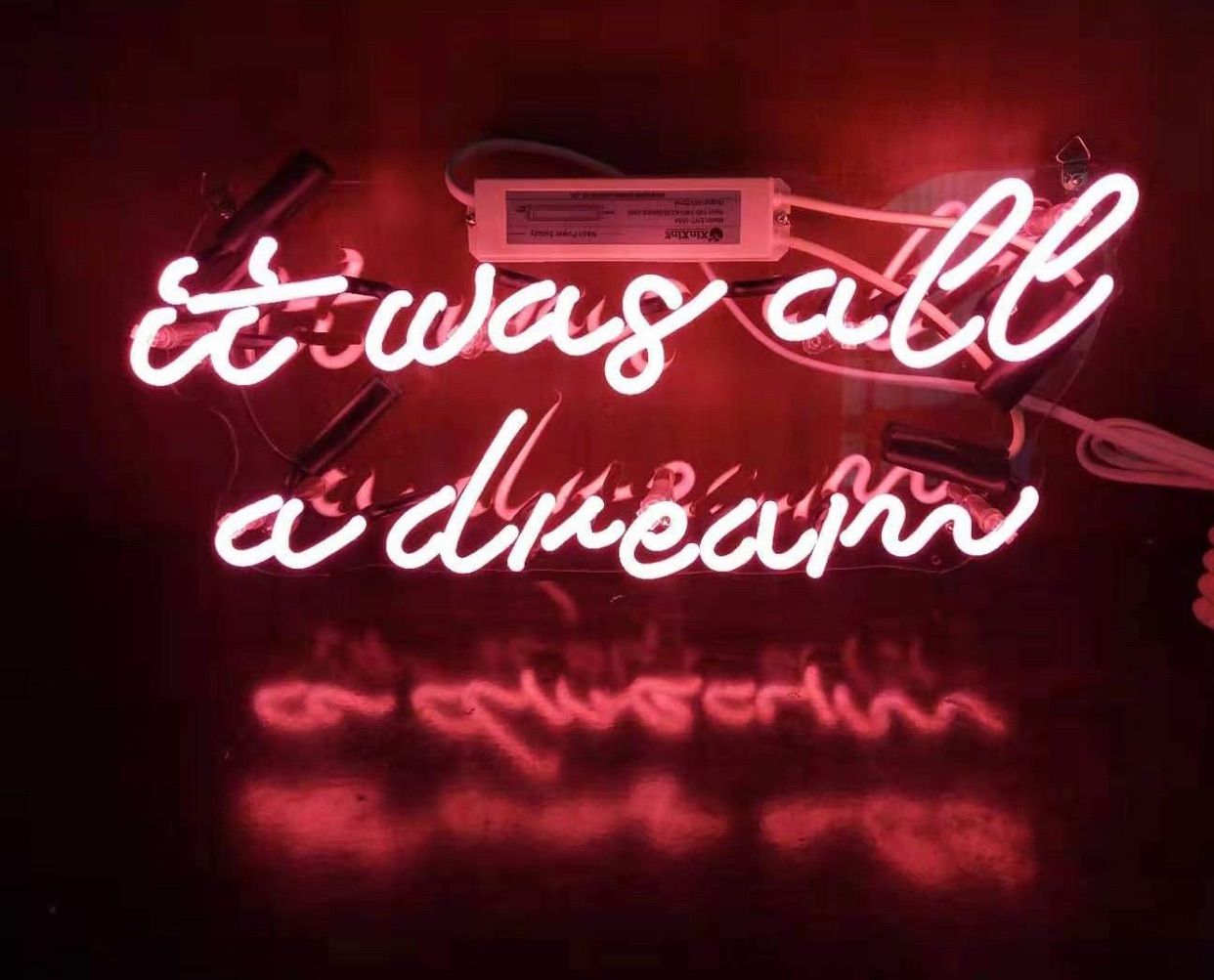 • デザイン:英語フレーズ「it was all a dream」を美しい筆記体で表現したアートネオンサイン。鮮やかなピンクの光が幻想的な雰囲気を演出し、カフェ、バー、サロン、個人の部屋やイベント装飾など、さまざまな空間にマッチします。