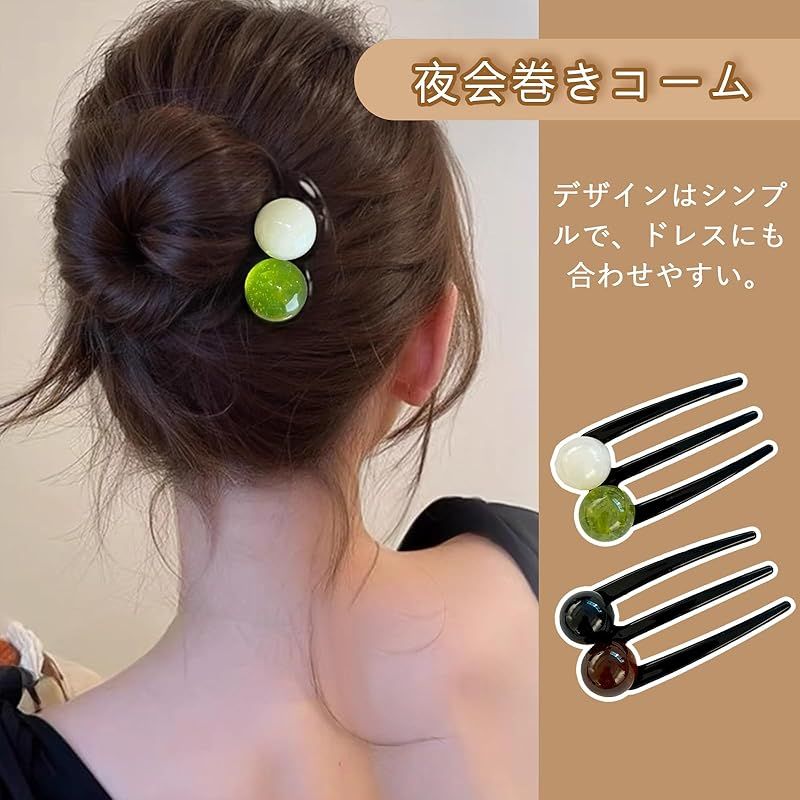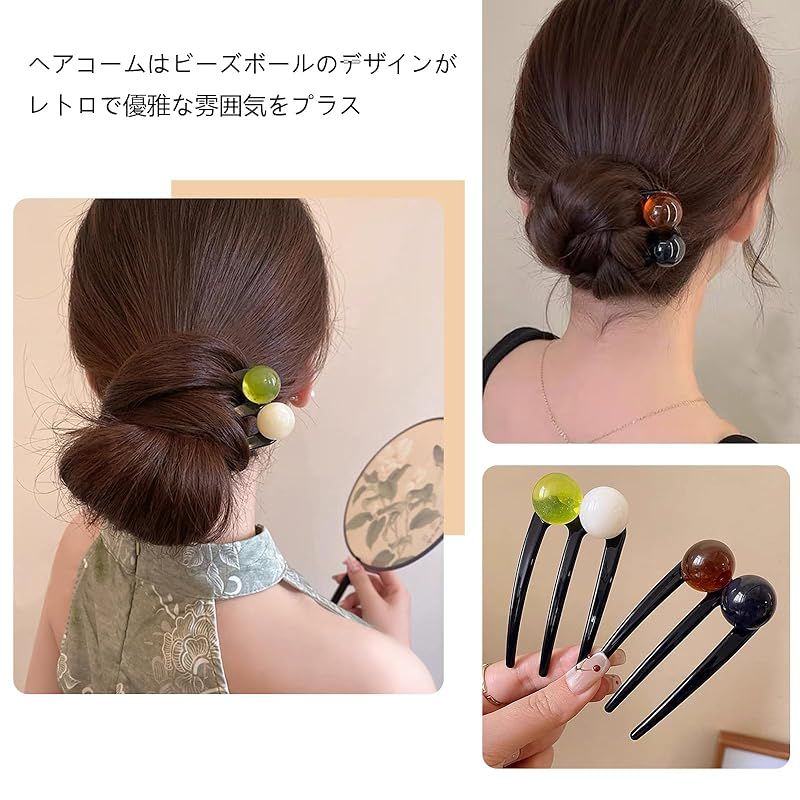 【ヘアコーム】ヘアコームはビーズボールのデザインがレトロで優雅な雰囲気をプラス。強くて柔軟な3歯、櫛は髪を優しくしっかりと掴みます。 細い髪から中程度の髪のタイプに適しています。デザインはシンプルで、ドレスにも合わせやすい。【高品質の素材】夜会巻きコームは高品質のアクリル素材を用いて作られ、丈夫で耐久性があり、変形しにくく、壊れにくく、長時間使用でき。とても滑らかで髪に優しいです。鋭利な部分がなく安全です、頭皮にやさしく、髪を傷めません。【商品のサイズ】長さ:8 cm、幅:4.3 cm、適度な長さで使いやすいです。数量:4個セット、軽量で持ち運びに便利。髪を結んだり、お団子を結んだり、ヘアスタイルを飾るのに使用できます。洗練された印象のヘアアレンジができます。【簡単で使いやすい】髪に差し込むだけで、しっかりと頭に固定でき、抜けにくい。ポニーテール、ハーフアップ、夜会巻きや、お団子など、さまざまなヘアスタイルに使え、エレガントな雰囲気を演出する実用的なアイテムです。【幅広い用途】結婚式、パーティー、成人式、披露宴、デート、卒業式 、入学式、コンサートなど様々なシーンに最適です。ほとんどの女の子や女性の要件を満たすのに適しており、ほとんどのフォーマルな場面でもカジュアルな場面でも着用できます。