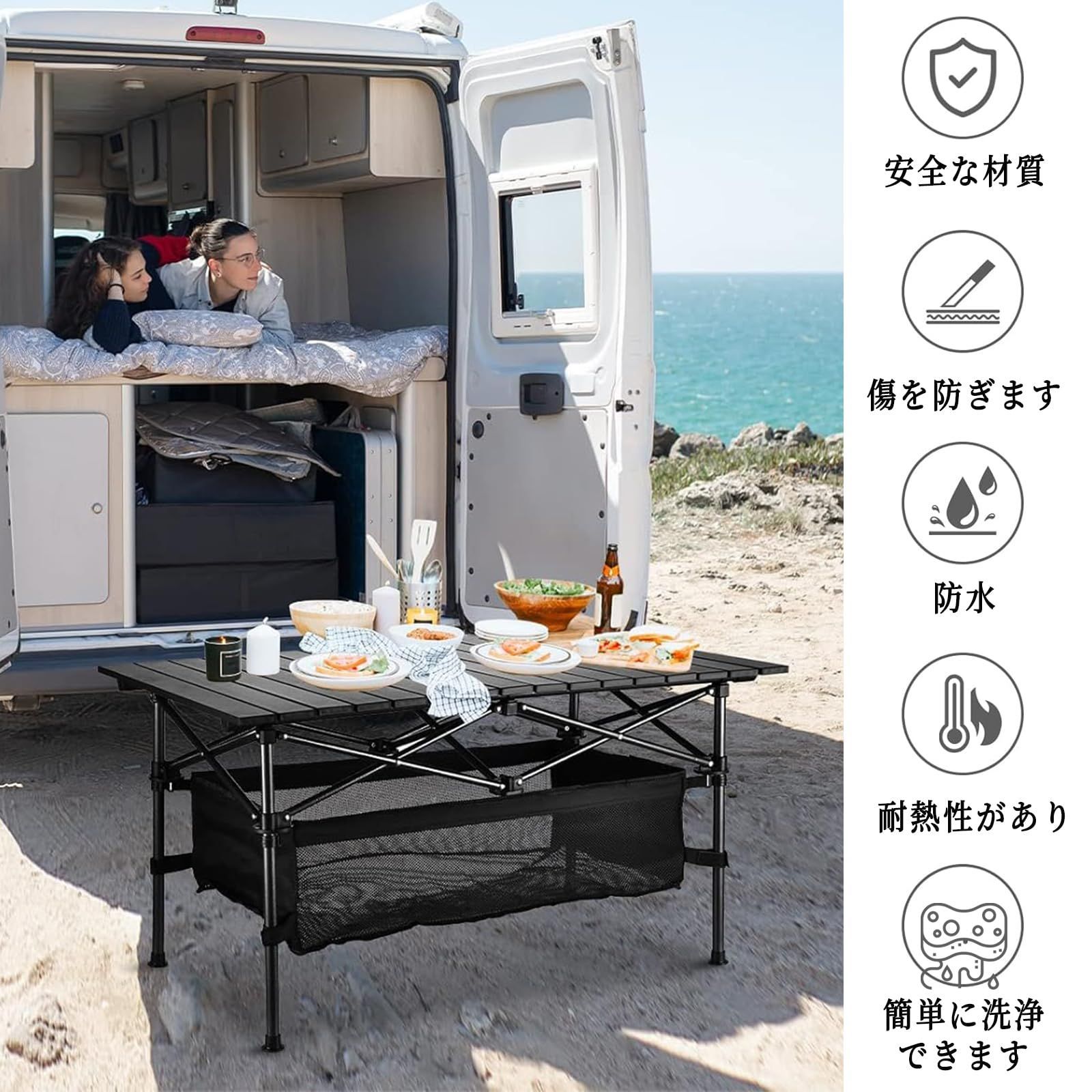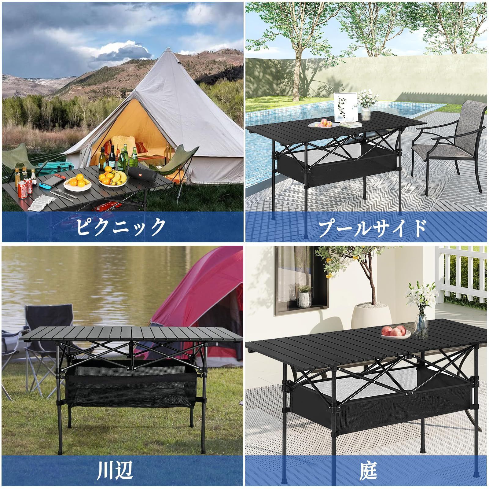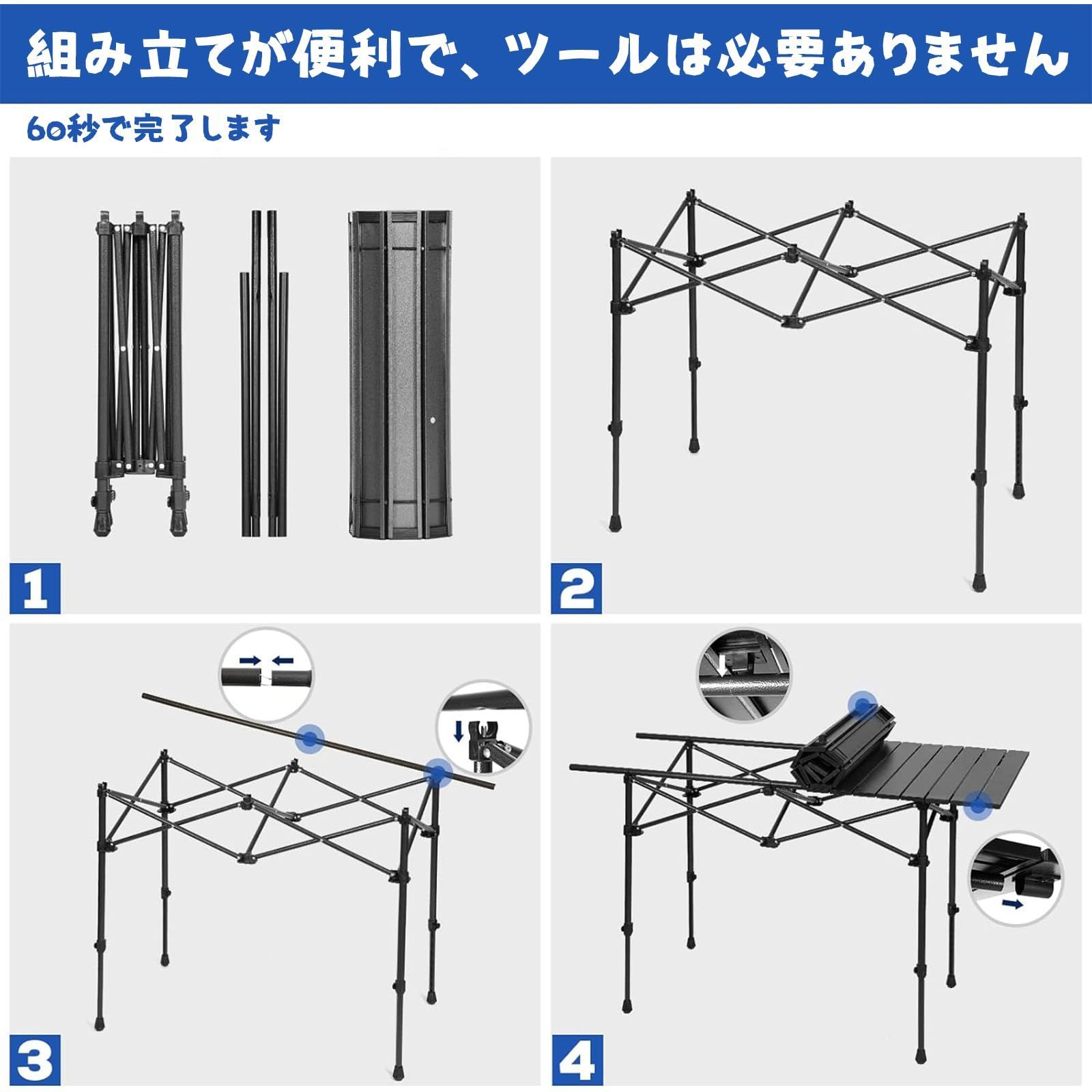 キャンプやバーベキューに手軽に持ち運べるアルミロールテーブルです