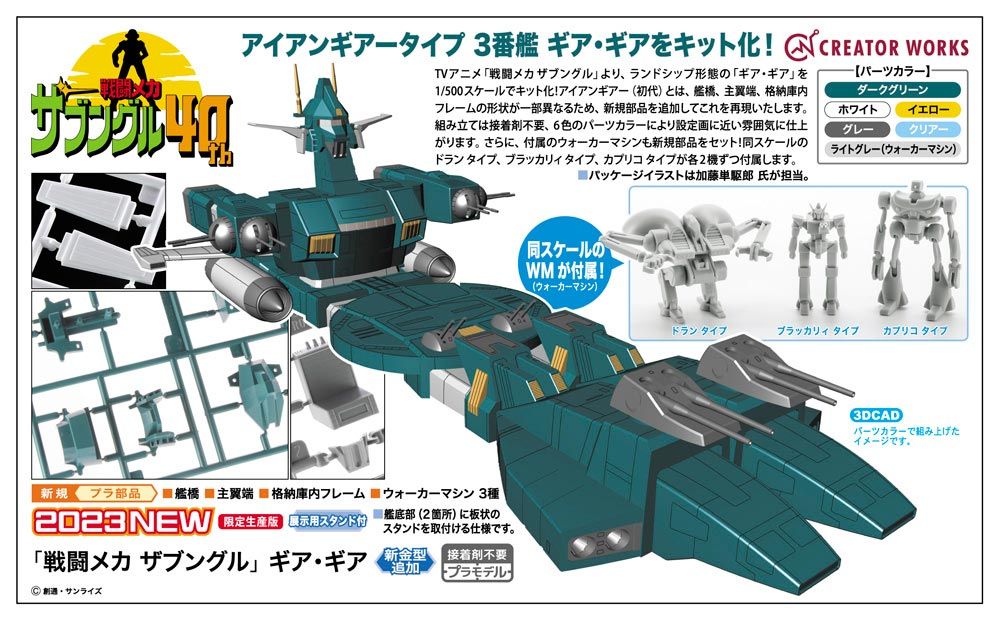 TVアニメ「戦闘メカ ザブングル」より、ランドシップ形態の「ギア・ギア」を1/500スケールでキット化!
