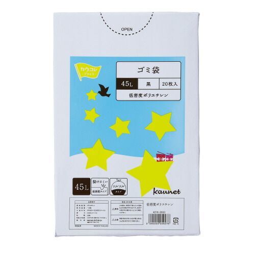 低密度薄口ゴミ袋 少量パック 45L 黒 20枚4216-2933【カウネット】