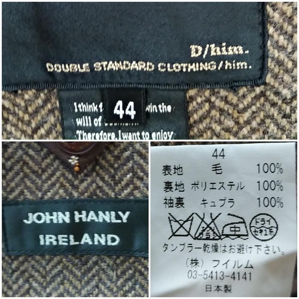 D/him JOHN HANLY ツイード テーラードジャケット 中厚手 メンズ44 茶 ダブルスタンダードクロージング 230205-01