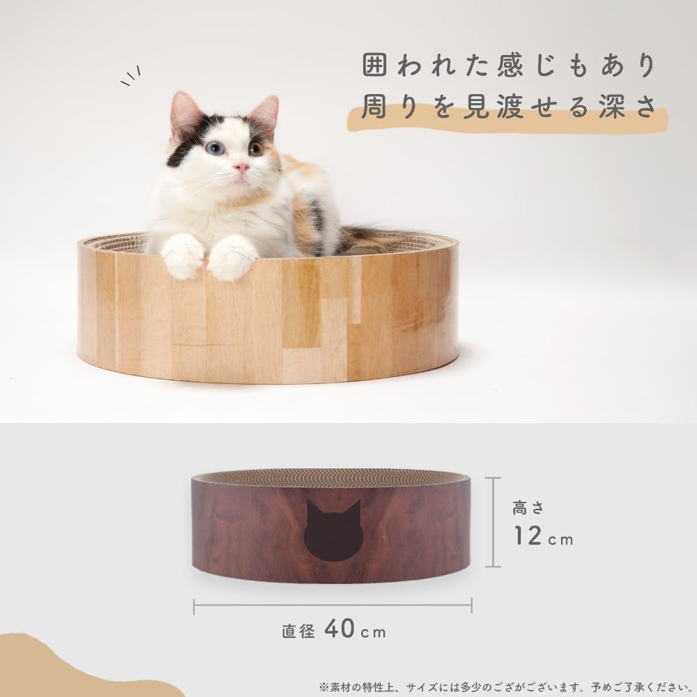 【「直径:40cm」大きめ猫でもバッチリ使える】バリバリボウルの直径は約40cm。大きめ猫ちゃんでもバッチリ使えるサイズです。 12cmの高さをもたせているので、ちょっと高いところで寝るのが好きな猫ちゃんの習性にもぴったり。 虜になる猫ちゃん続出の魅惑のベッドです。