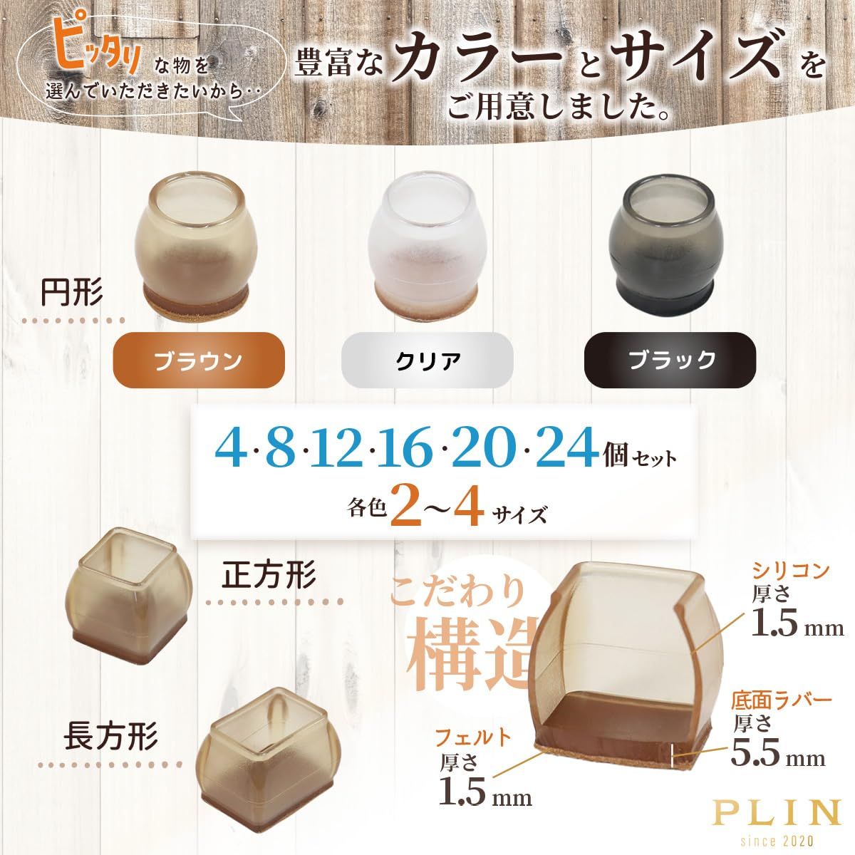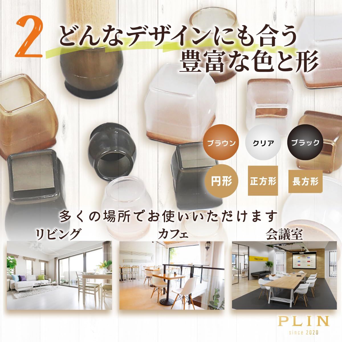 当店の椅子脚キャップはさまざまなカラーを用意しています。椅子や床の色に合わせて選ぶのがおすすめです。