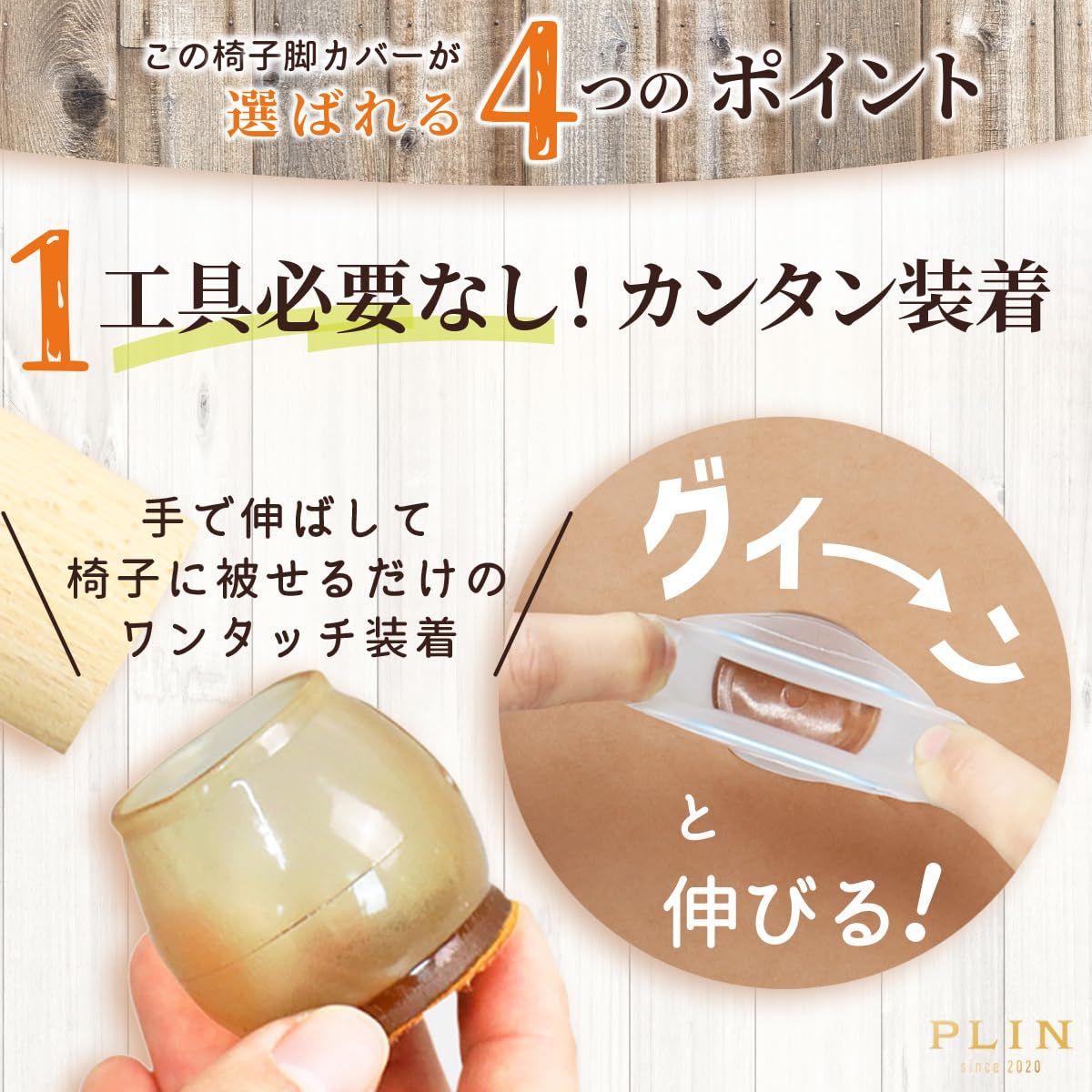 椅子脚キャップの取り付け方法 椅子脚キャップは工具不要で簡単に取り付けられます。