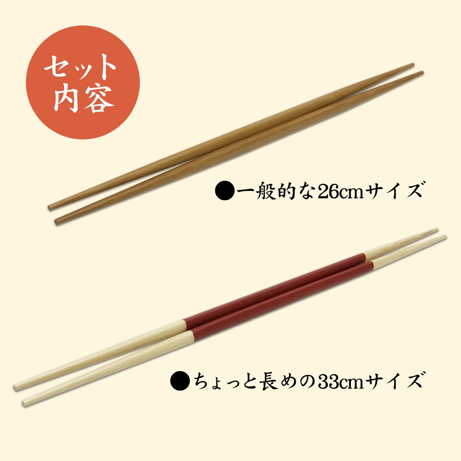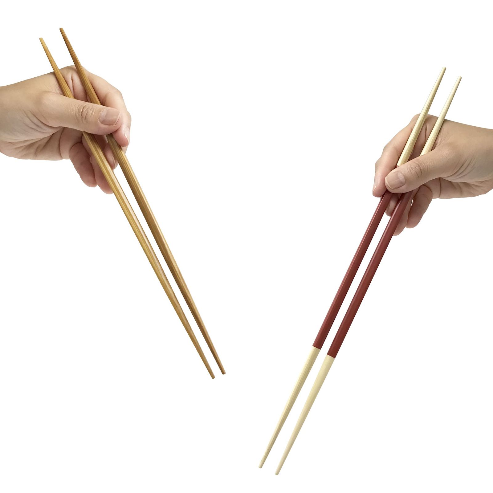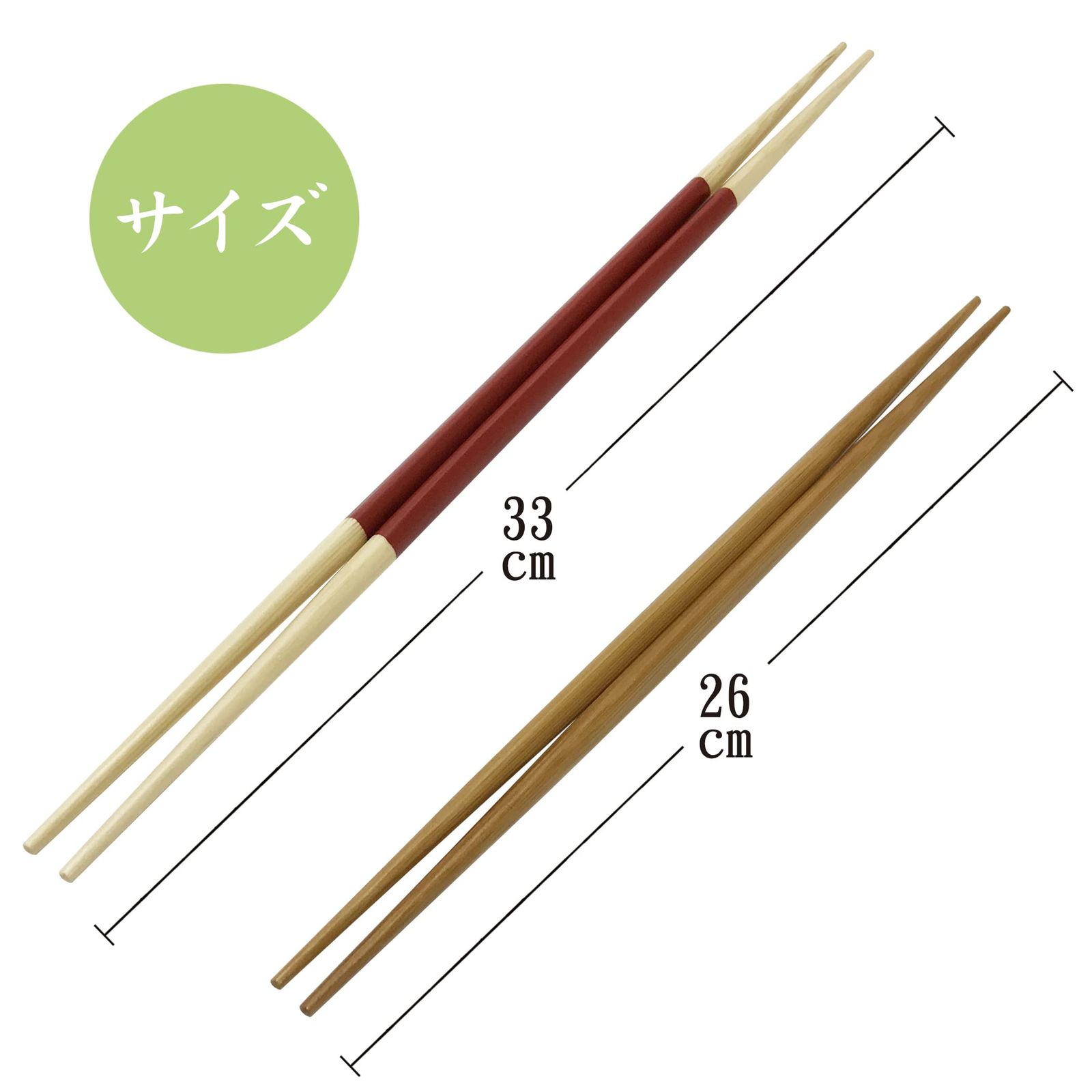 【使いやすい菜箸2膳セット】料理の盛り付けが楽しくなる!持ちやすくて、使いやすい菜箸です。先端が細目に加工してあるので食材をつかみやすくなっています。一般的な26㎝サイズとちょっと長めの33㎝サイズの調理箸がセットになっています。