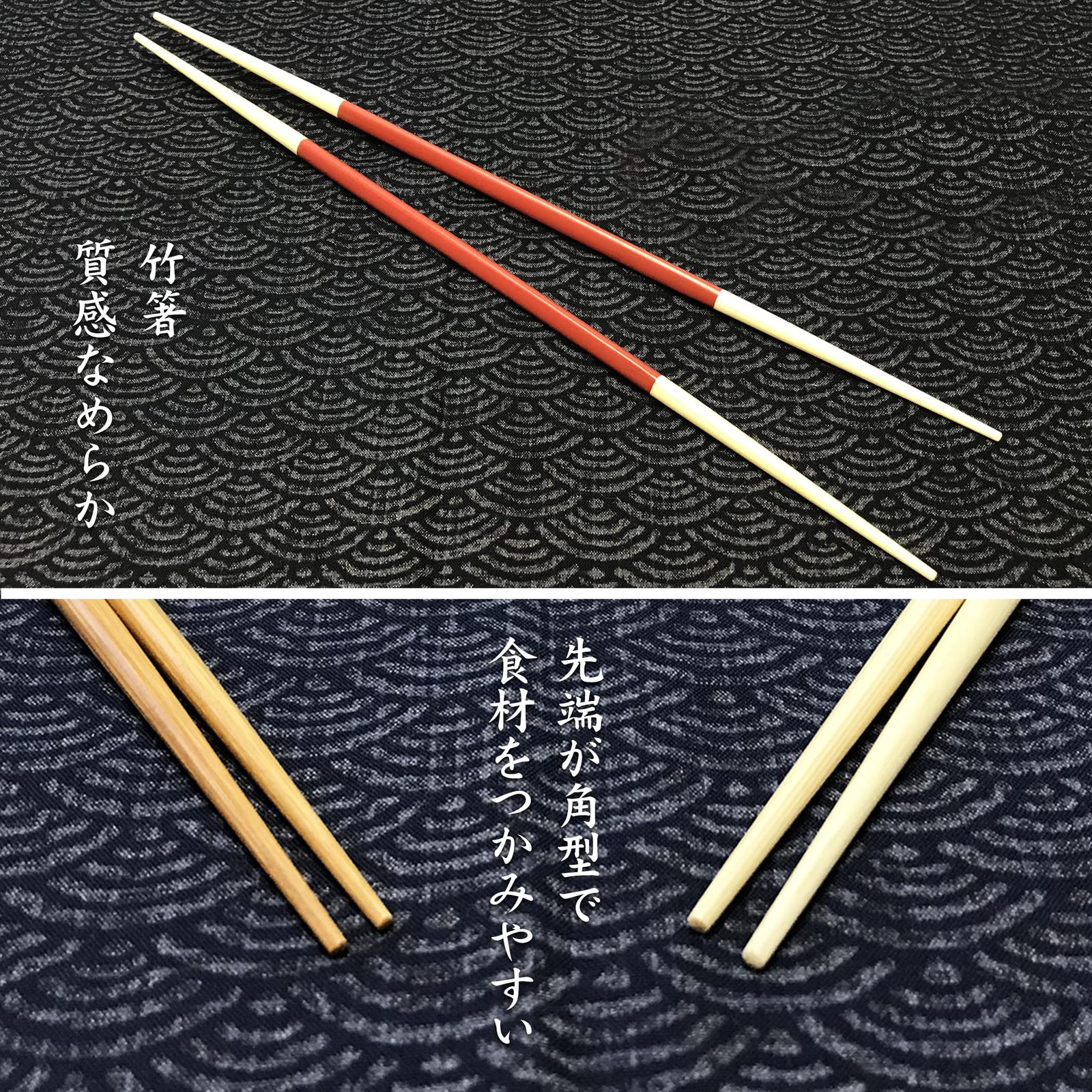 【安心の日本製】日本の竹を使用し代々伝わる技術で職人さんが丁寧に作り上げています。質の高い調理箸を使って毎日の料理を楽しく、また食卓を鮮やかにしてみてはいかがですか?