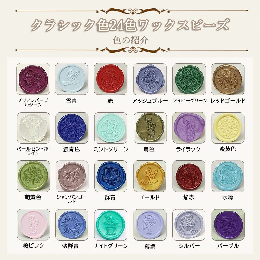 シーリングスタンプ シーリングワック スセット【クラシック色24色セット】ヘッド蝋封 ワックス大量 手紙 便箋 印鑑 封筒 招待状 祝福 告白 祝い 手紙装飾 DIY 24色ワックスビーズ+スプーン+キャンドル+ワックス炉+スタンプ+スタンプ台+両面シールなど15点セット