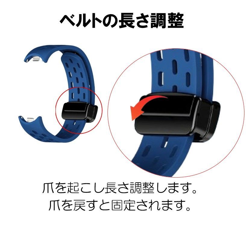 マグネット式 バタフライバックルを採用
