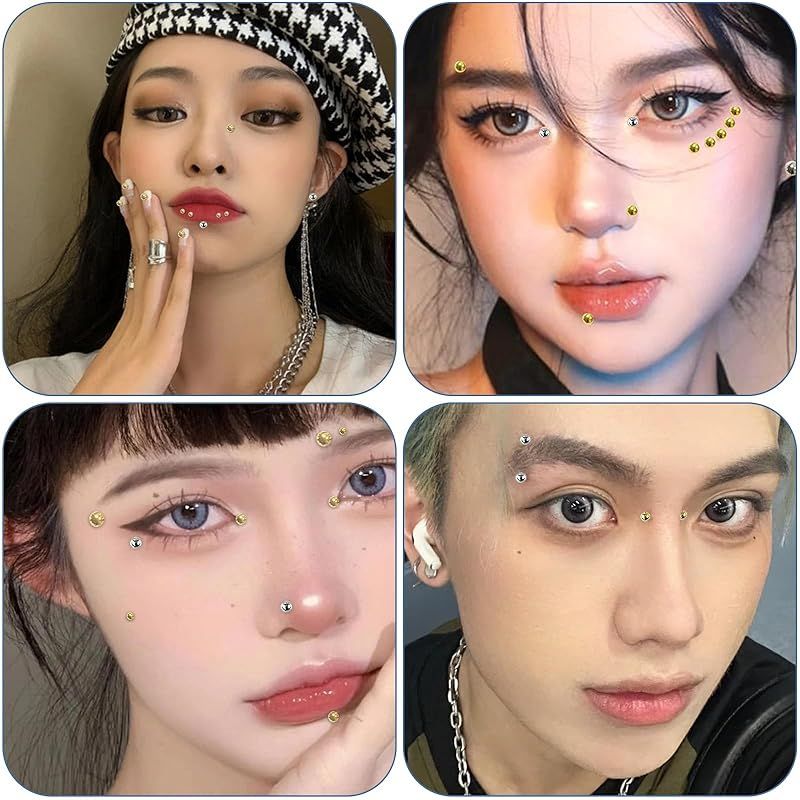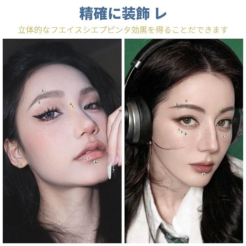 1.このピアスシールは、様々なメイクアップに合わせて使用でき、スタイリングのバリエーションを増やします。2.ゴールドとシルバーの2色コンボパックは、組み合わせて使うことができ、より多くのスタイリングの可能性を追加します。3.この貼るボディピアスは、用具なしで使用することができ、初心者はまた、正確な位置決めすることができます。4.このリップシールは、唇のピーク、眉毛の端、耳の骨、頬骨、涙管、鎖骨を正確に装飾し、立体的なフェイスシェーピング効果を得ることができます。5.この穴いらず 貼るボディピアスはパーティーや社交シーンで目を引く必殺アイテムで,非常に認識できる抜け目がない記憶ポイントを作成します。