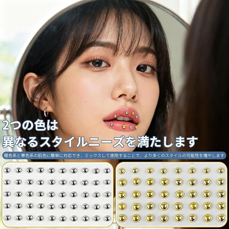 商品名:[Seiunn] ピアス シール 穴いらず フェイクピアス【2個セット シルバー+ゴールド】 貼るボディピアス リップシール 装着簡単 長持ち おしゃれ シンプル 人気 地雷系 ゴシック 唇釘 眉釘 耳くぎ 顔面デコ用 ハロウィーンデコレーション 男女兼用