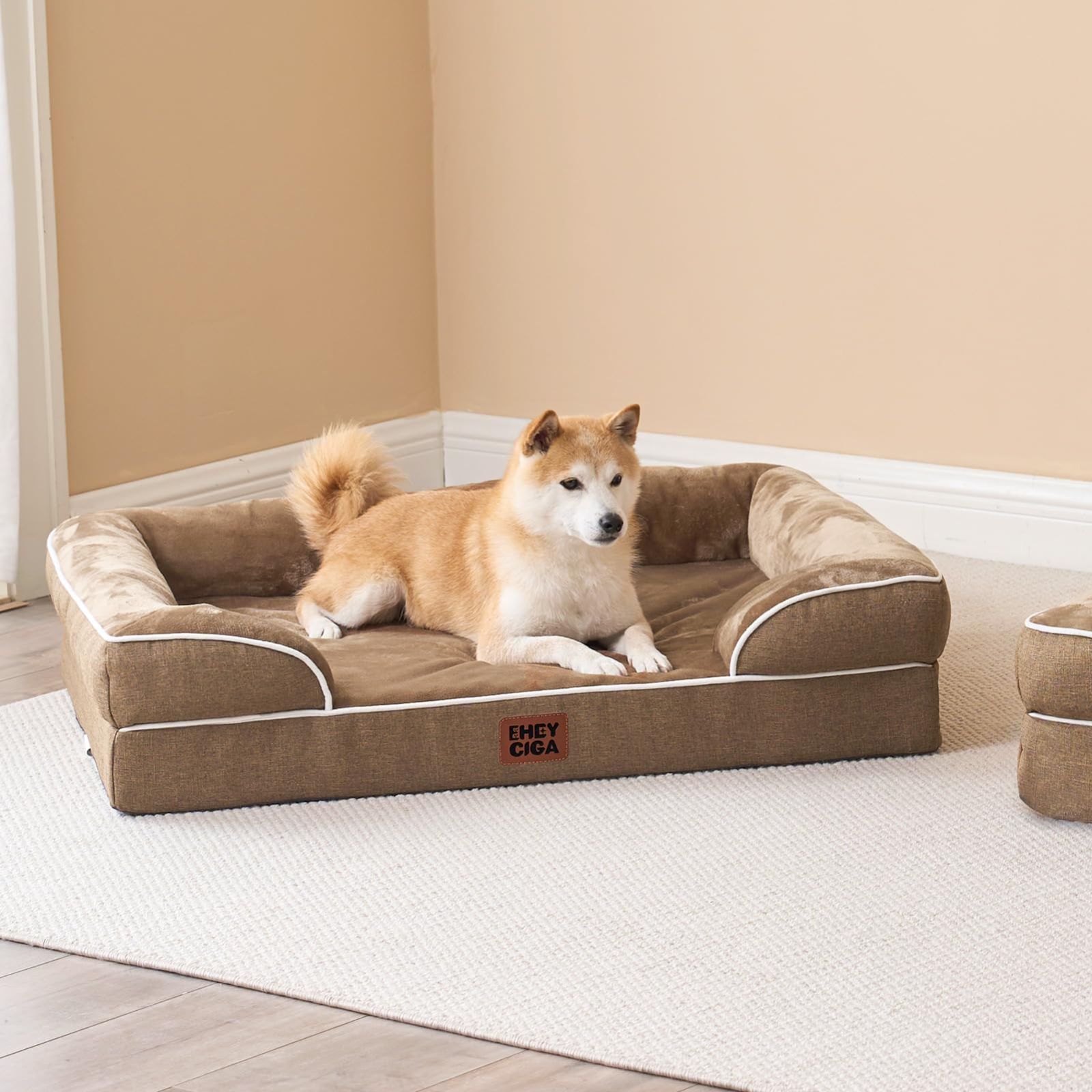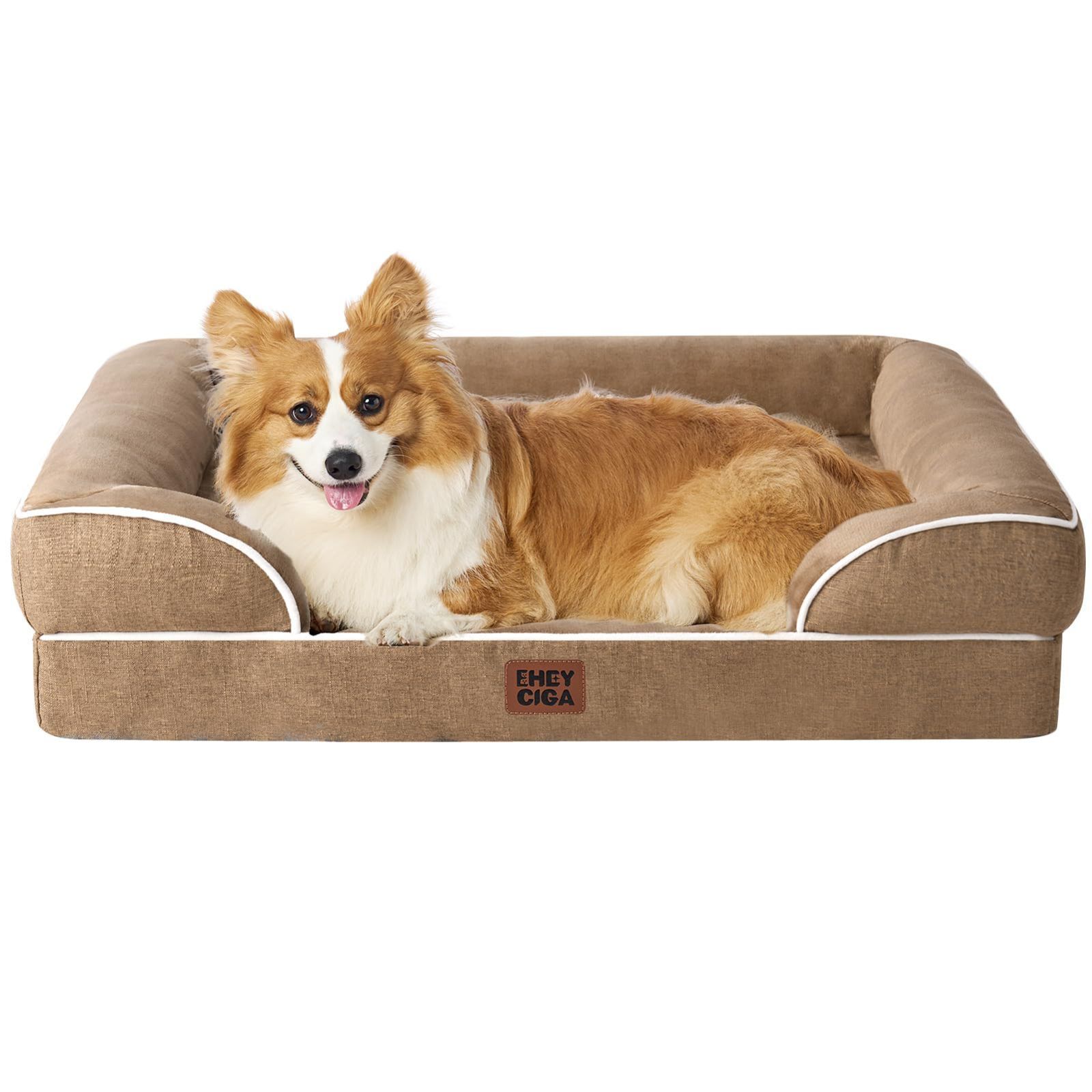 EHEYCIGA 犬 ベッド 冬 ペットベッド 防水 猫 ベッド 洗える 犬用 クッション 高反発 取り外せるカバー 滑り止め オールシーズン 中型犬 大型犬(89x56x16.5cm,カーキ)
