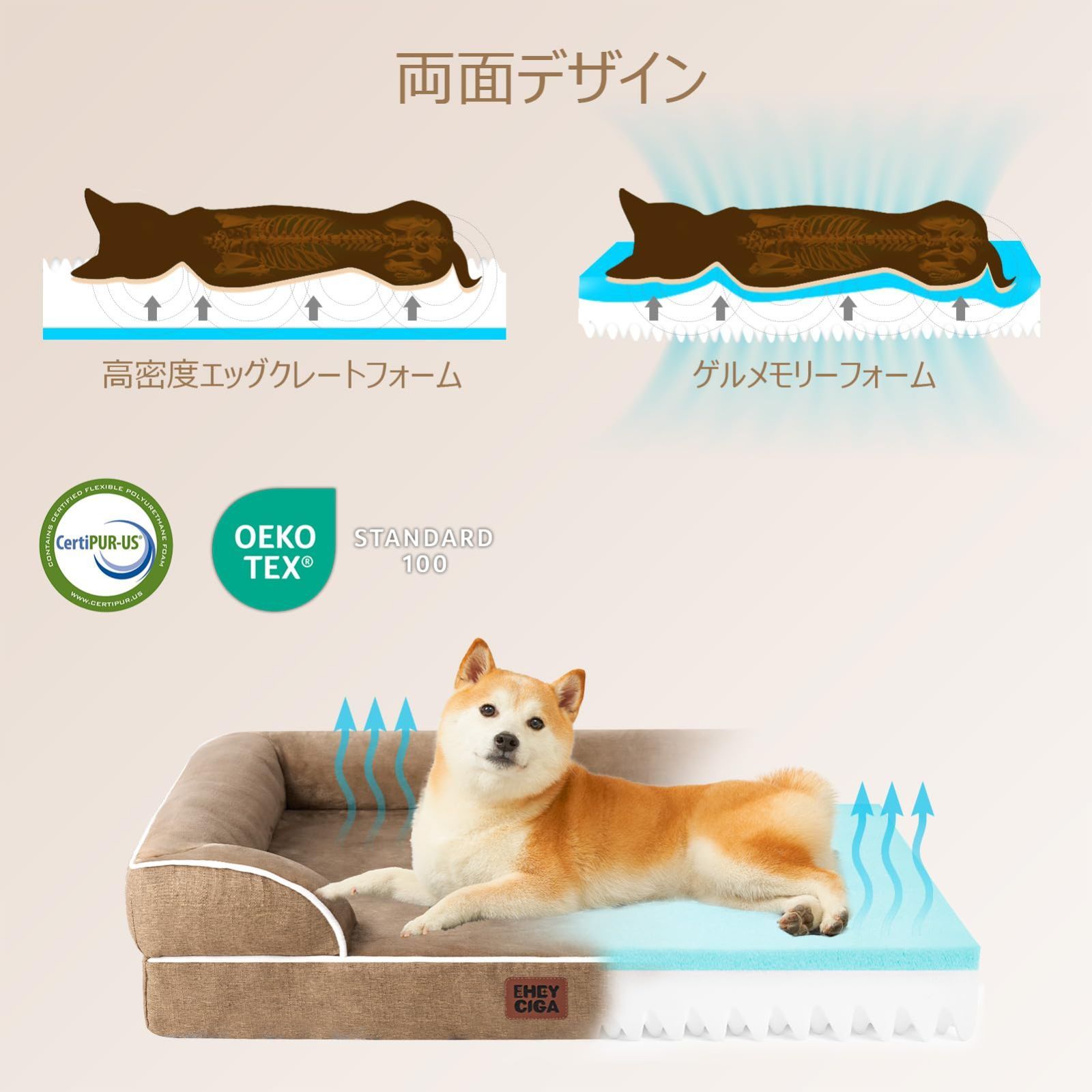 メモリーフォーム採用:EHEYCIGA犬ベッドは、メモリーフォームと卵型フォームを組み合わせて設計されており、体を均一に支えて体圧を分散します。柔軟性とサポート力のバランスに優れ、特にシニア犬の関節への負担軽減に効果的です。